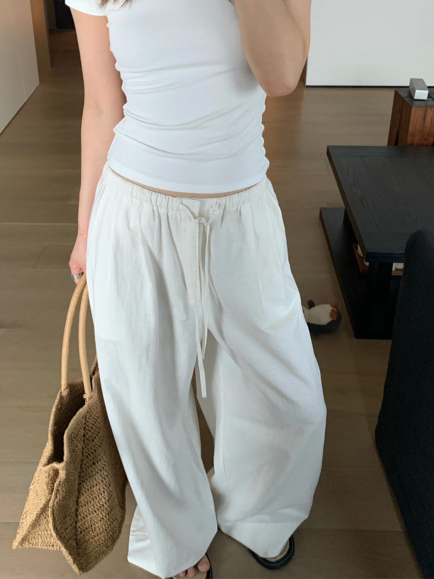 慵懒松弛感棉麻阔腿休闲裤女夏季加长款防晒直筒拖地裤