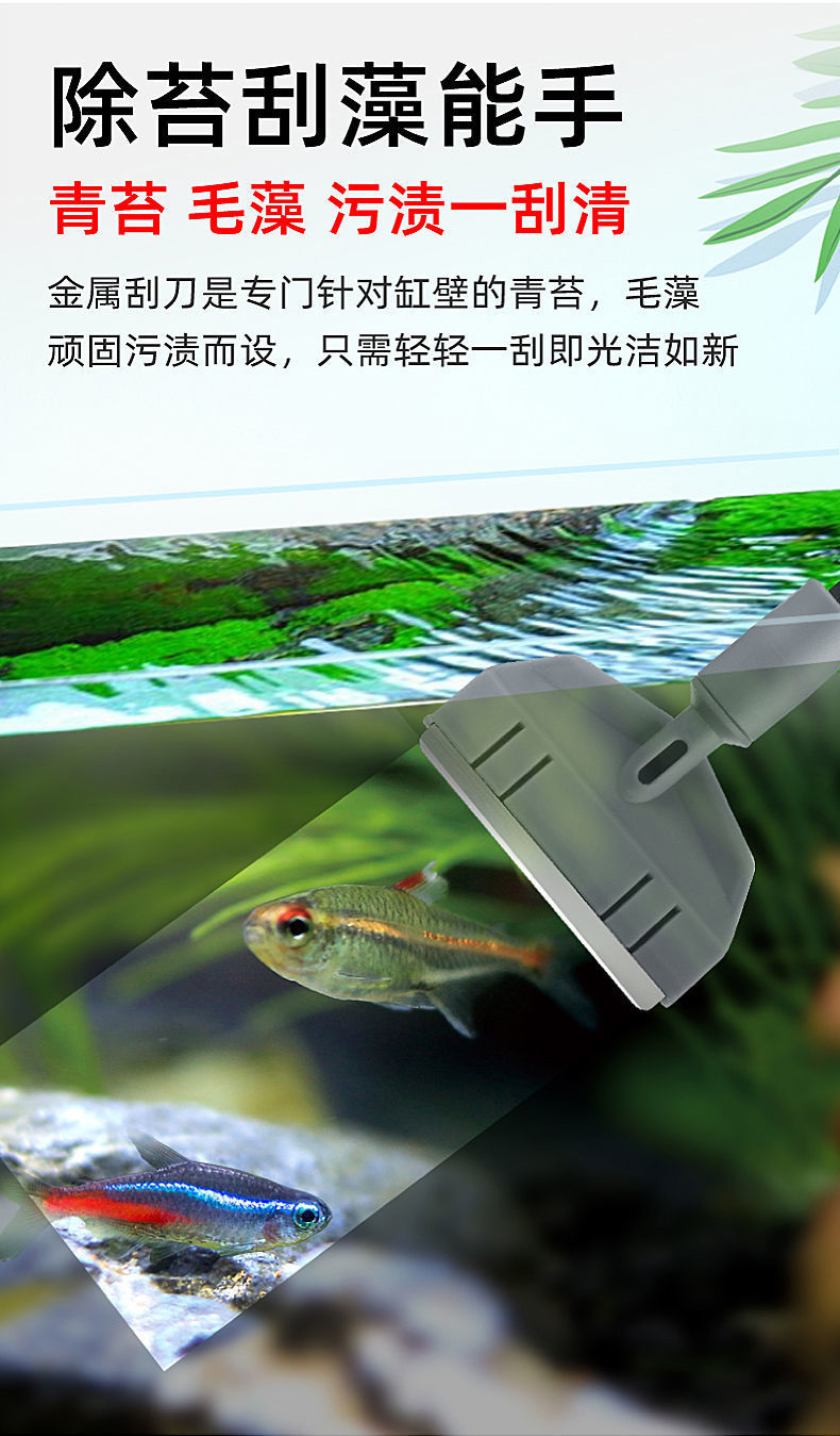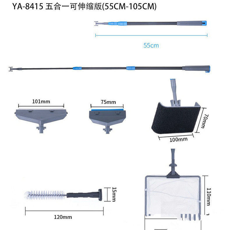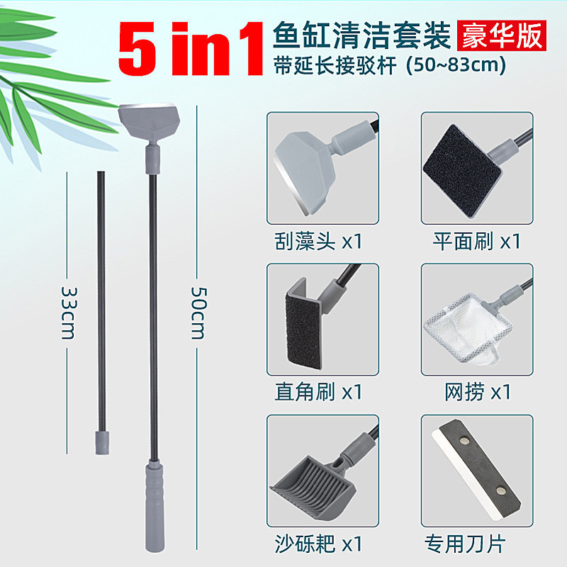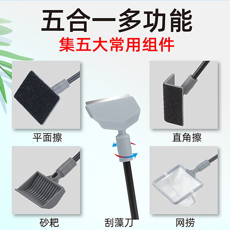 5-in-1 수조 청소 도구, 조류 스크레이퍼, 낚시 그물 브러시 세트, 사각지대 없는 청소기, 수족관 전용스토어 가기