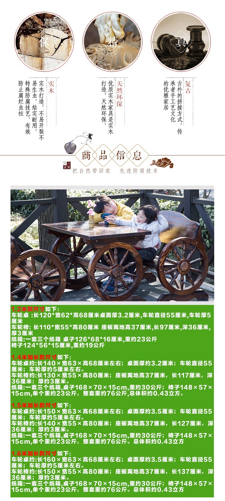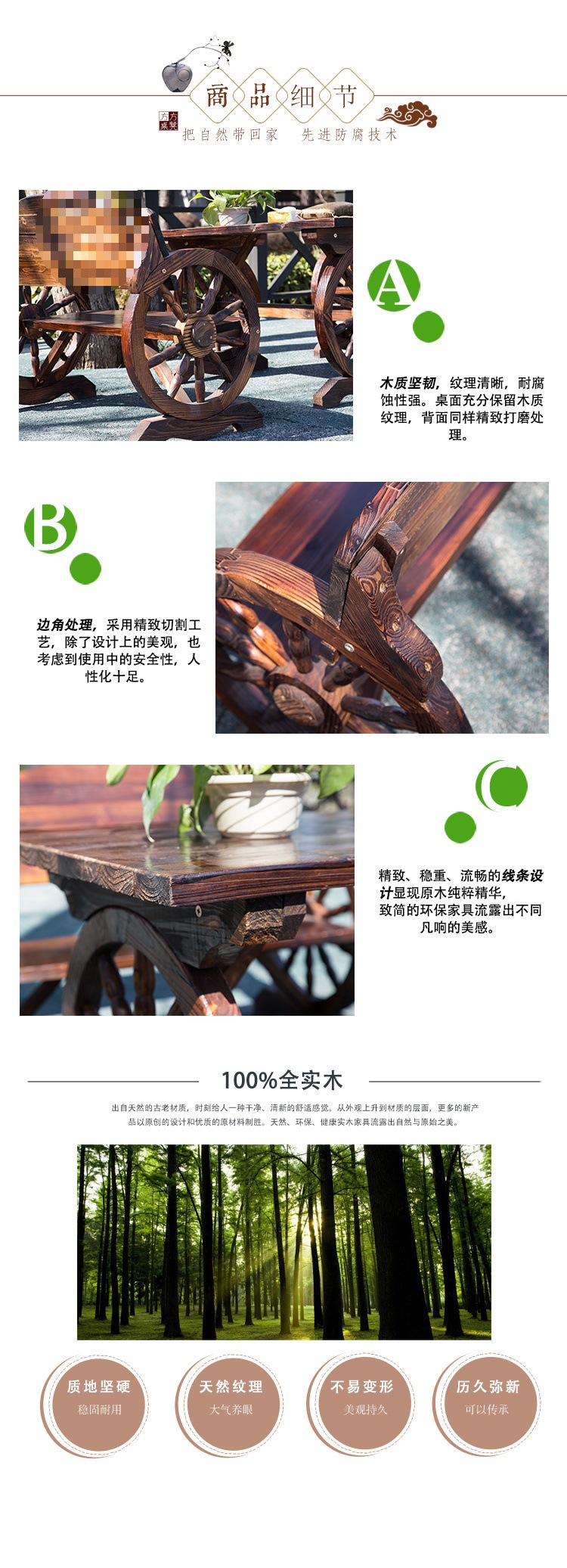 야외 테이블과 의자 테라스 레저 바 야외 단단한 목재 부식 방지 목재 바퀴 테이블과 의자 정원 발코니 안뜰 그룹 mω스토어 가기