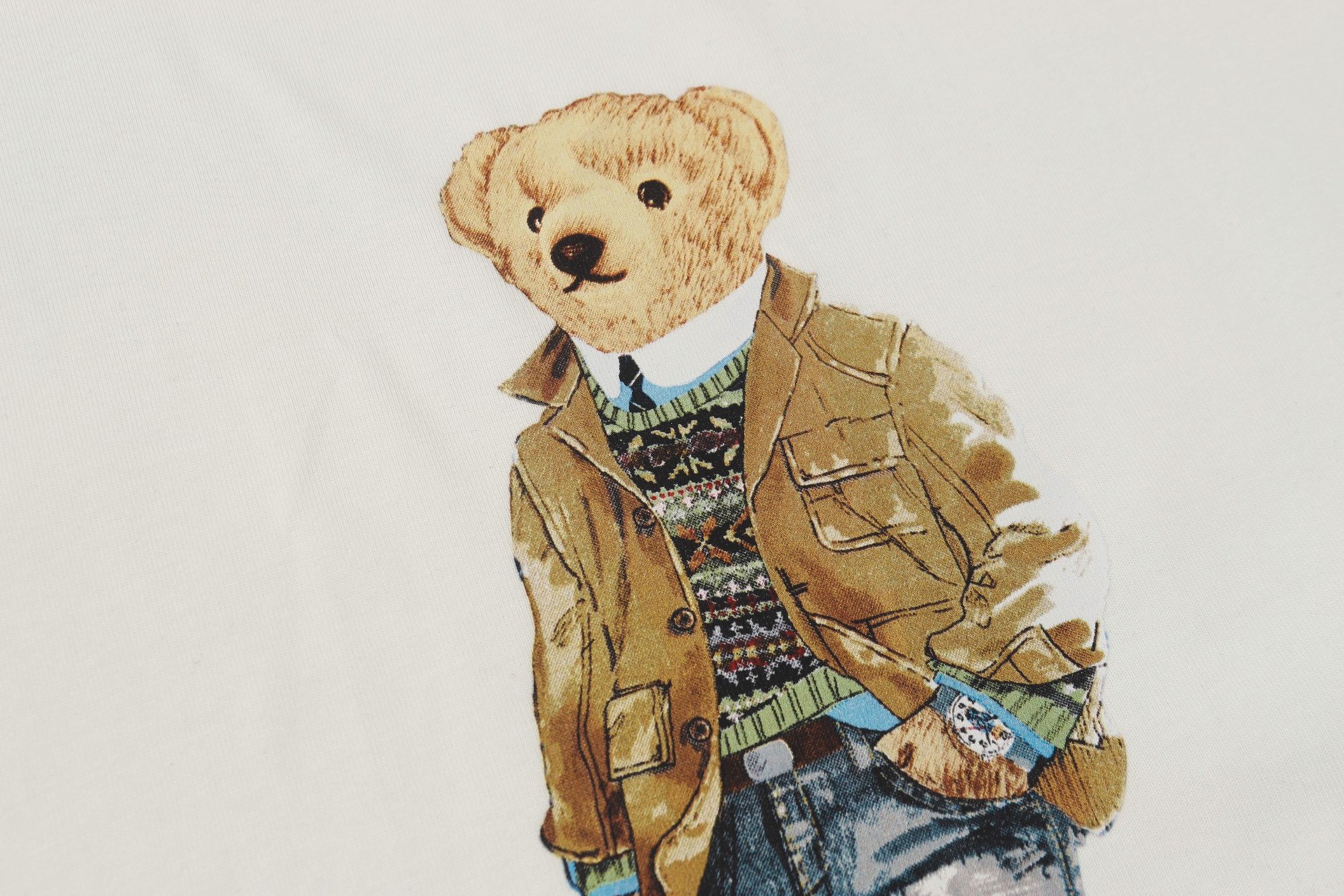 스윕 코드 국경 대외 무역 S 여름 RL 러프 클래식 베어 프린트 라운드 넥 기본 반팔 티셔츠 남성과 여성스토어 가기