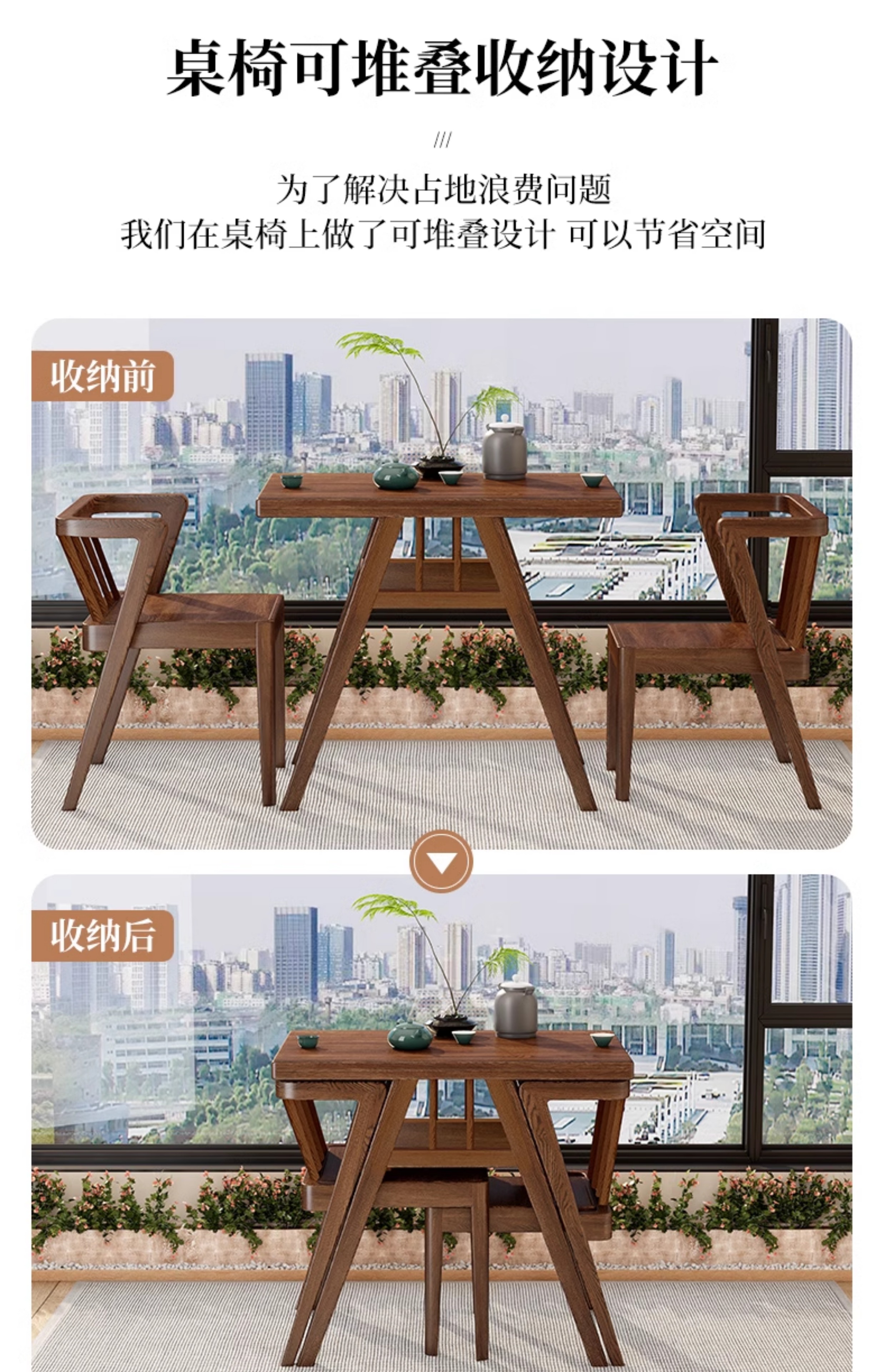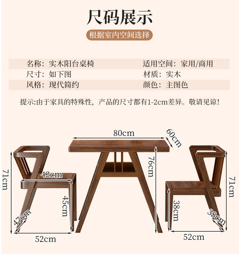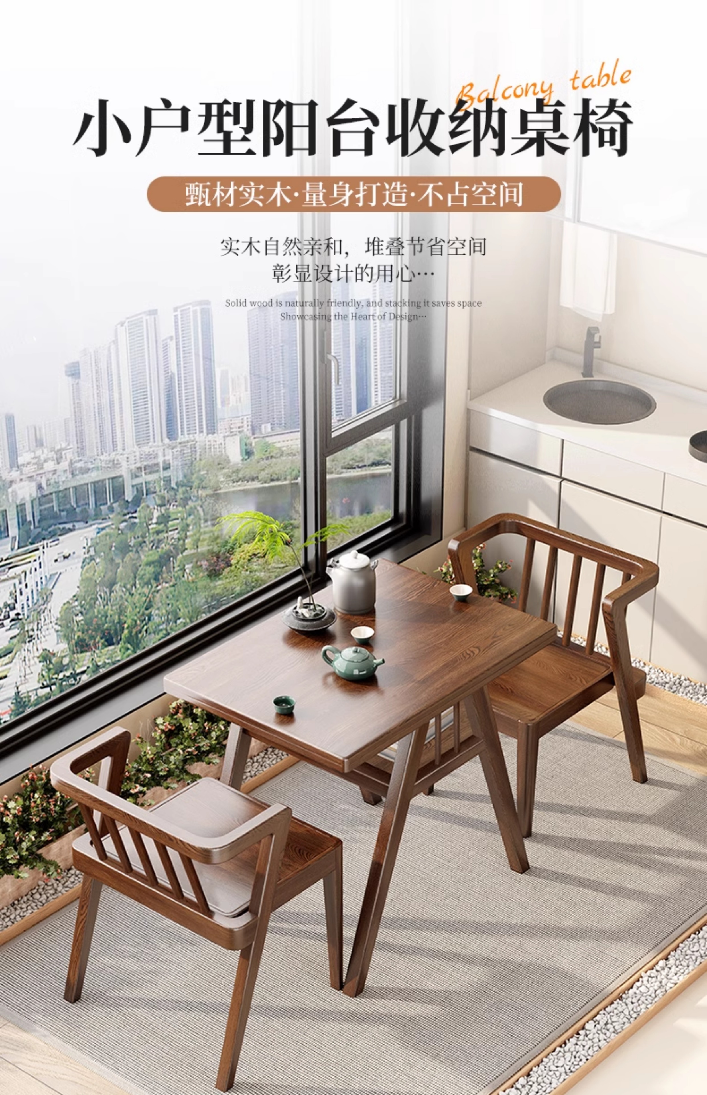 발코니 티 테이블 작은 단단한 나무 새로운 스타일의 가정용 테이블과 의자 2개 조합 크리 에이 티브 레저 티 테이블 작은 테이블과 의자 3 피스 세트