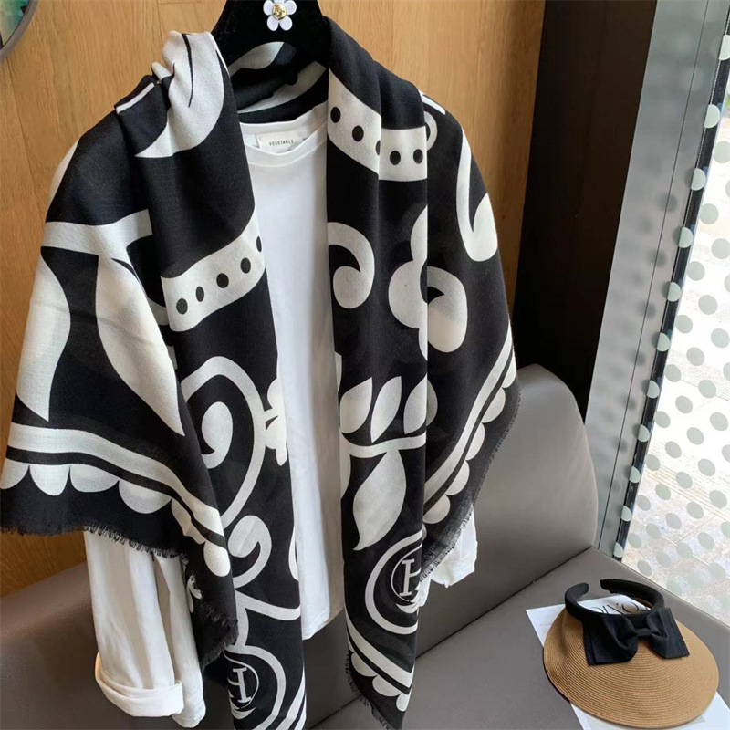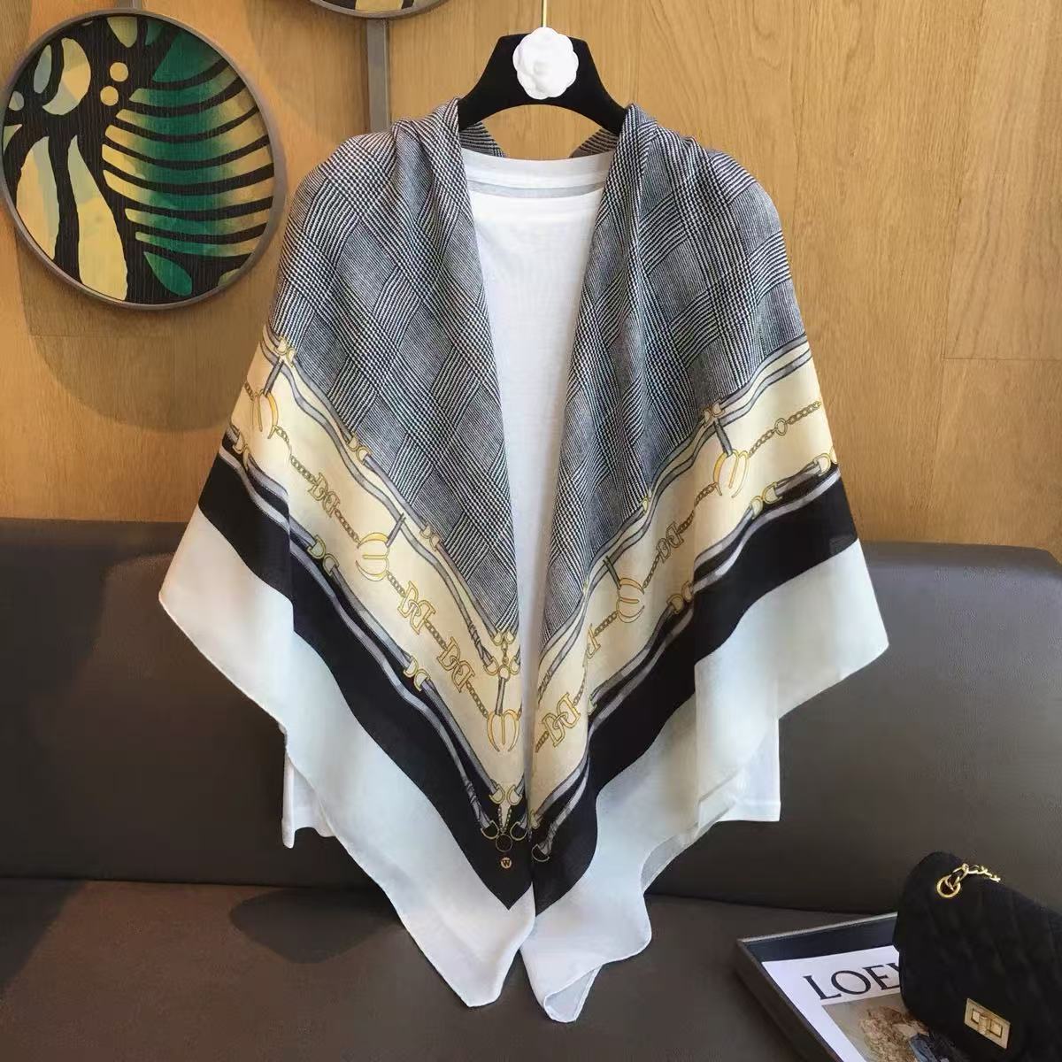 블루 레트로 130 대형 스퀘어 2024 여름 새로운 에어컨 룸 목도리 선스크린 실크 스카프 봄과 가을 리넨 스카프