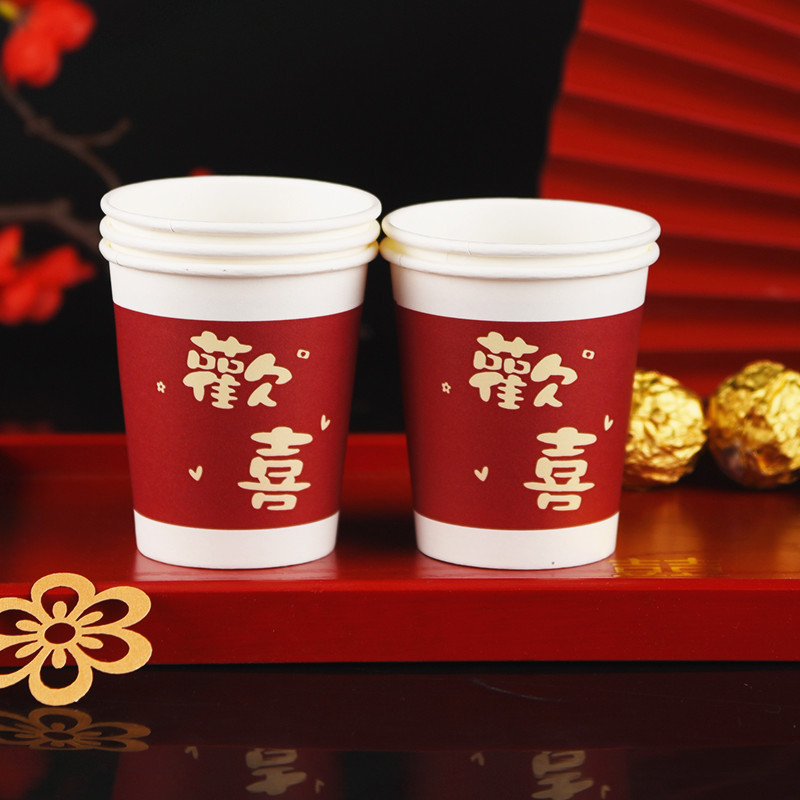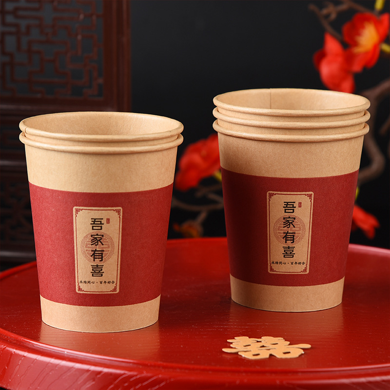 • Zhaohe 새로운 중국 스타일 와인 레드 두꺼운 종이컵 245ml 100개 ♜