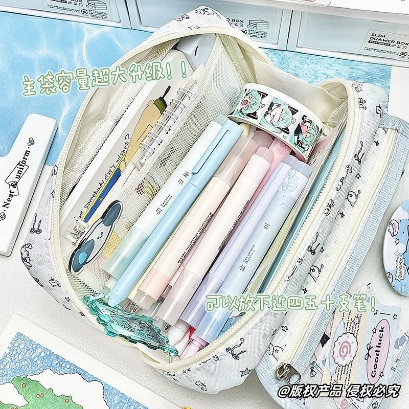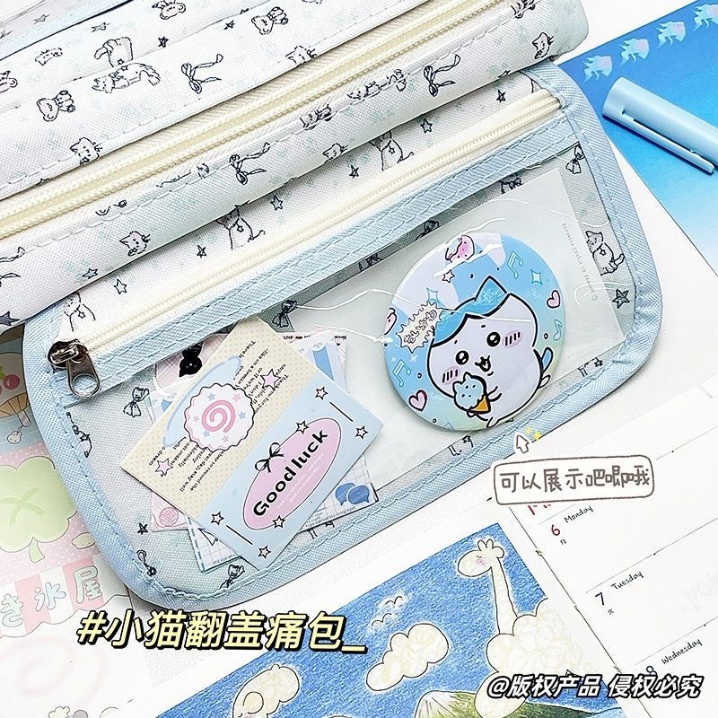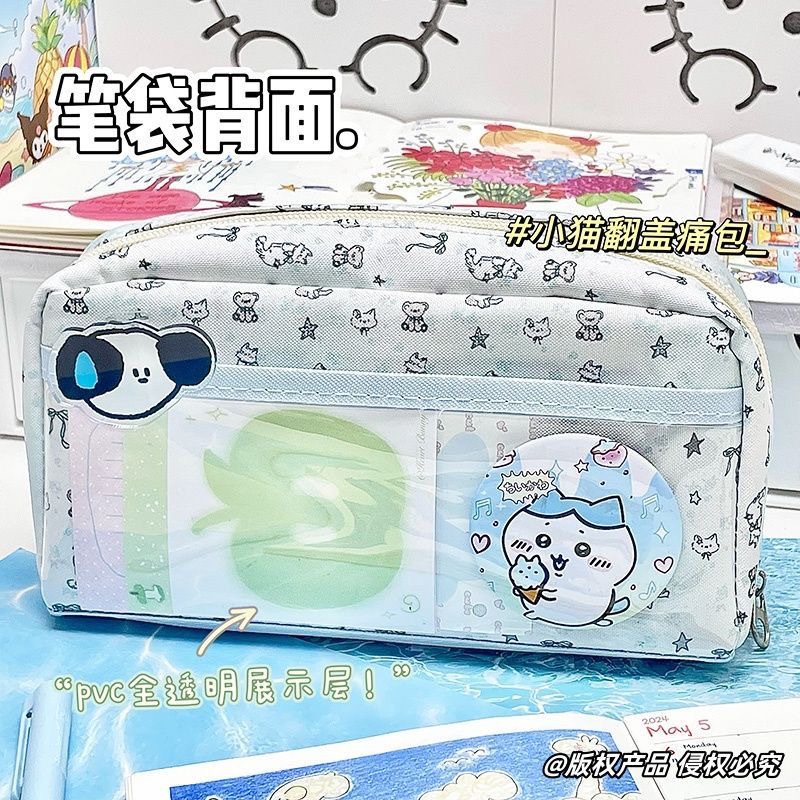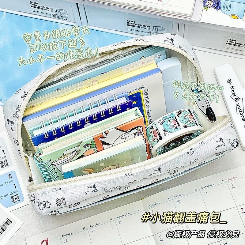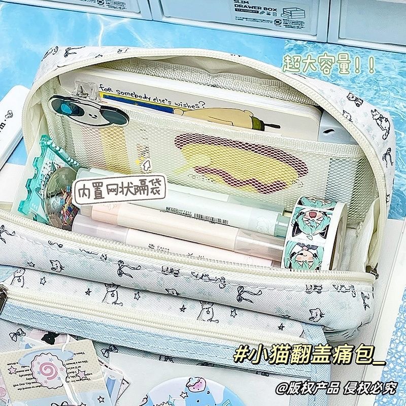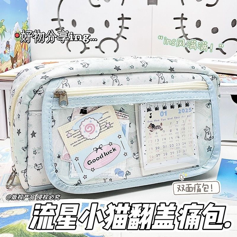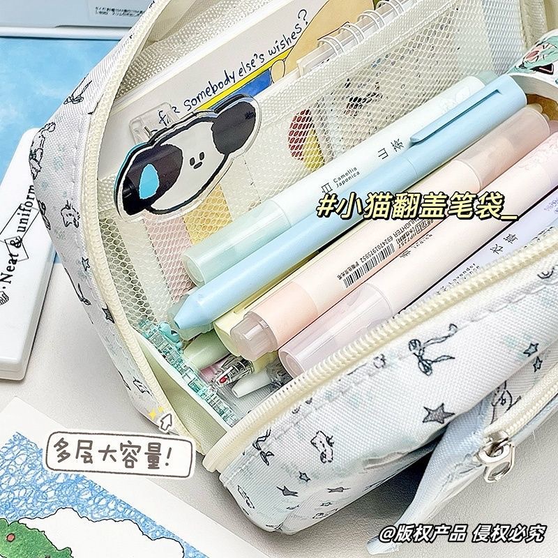새로운 유성 새끼 고양이 플립 커버 통증 가방 편지지 펜 가방 투명 높은 가치 대용량 학생 귀여운 다층 저장스토어 가기