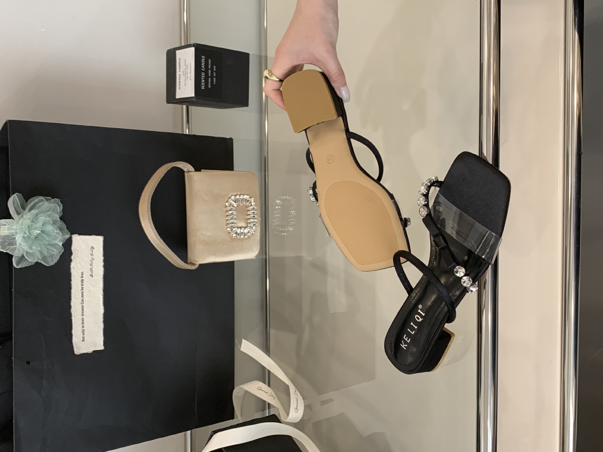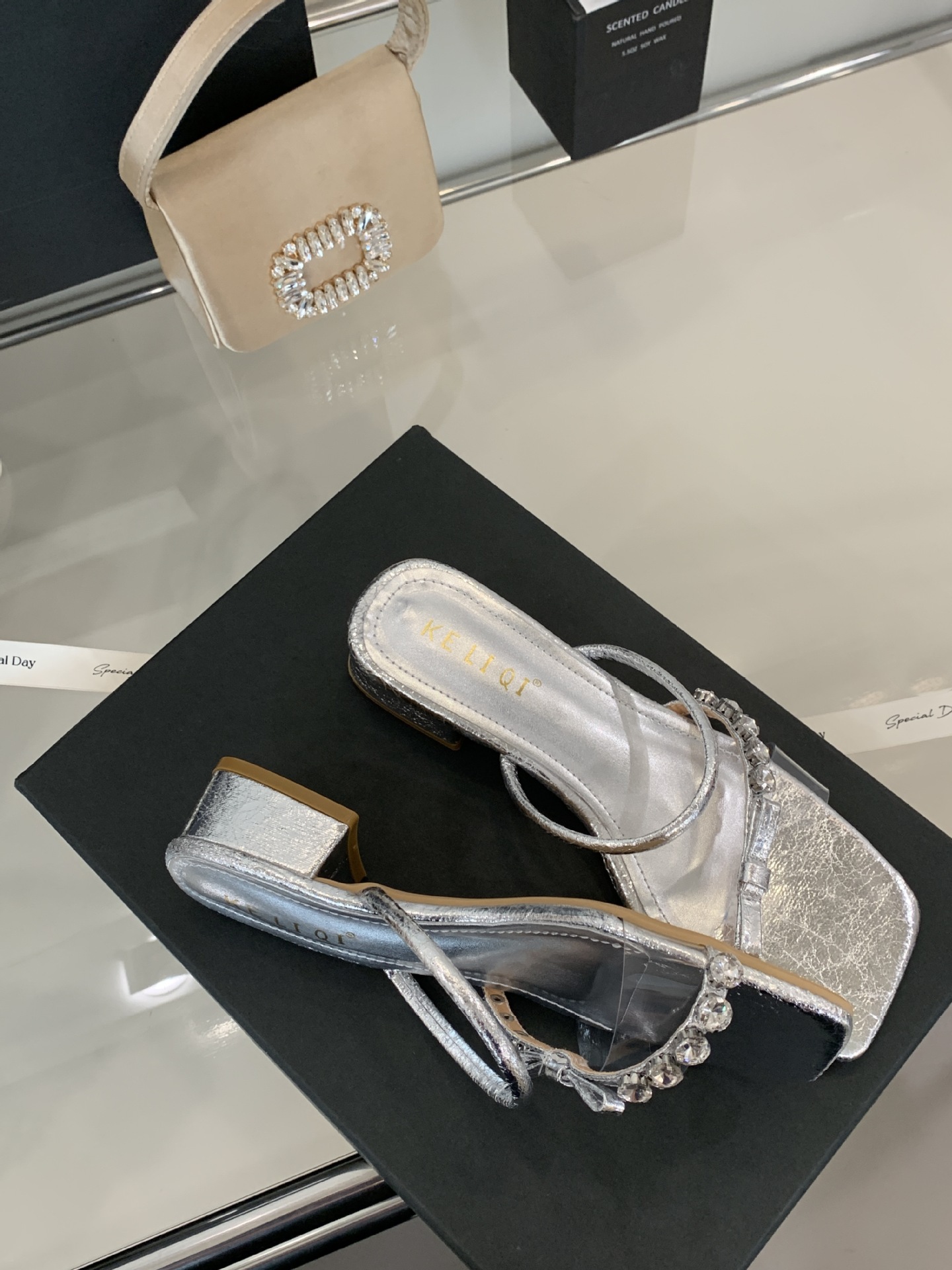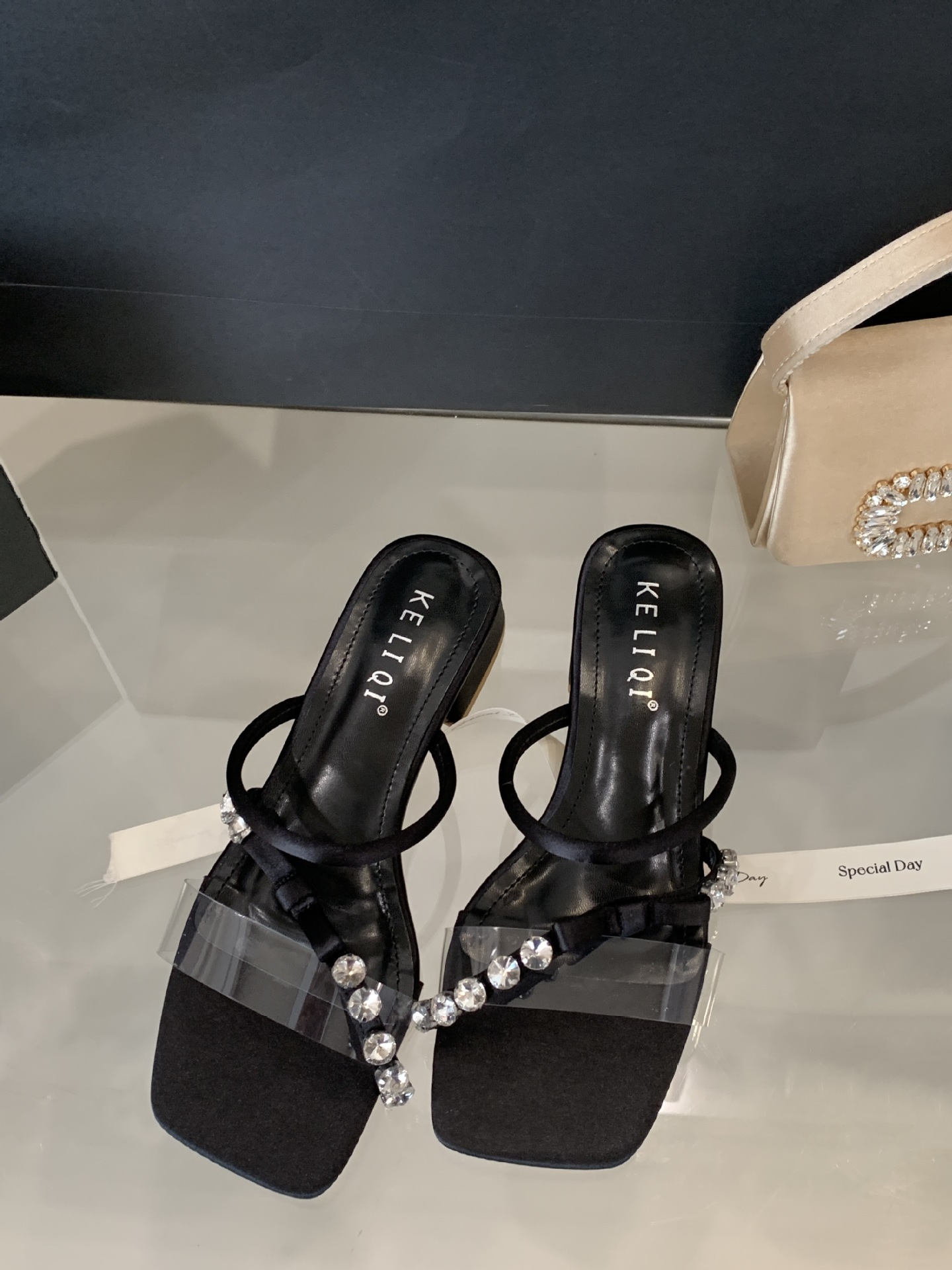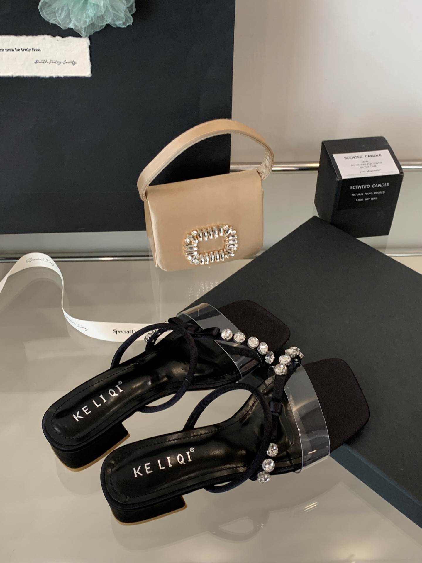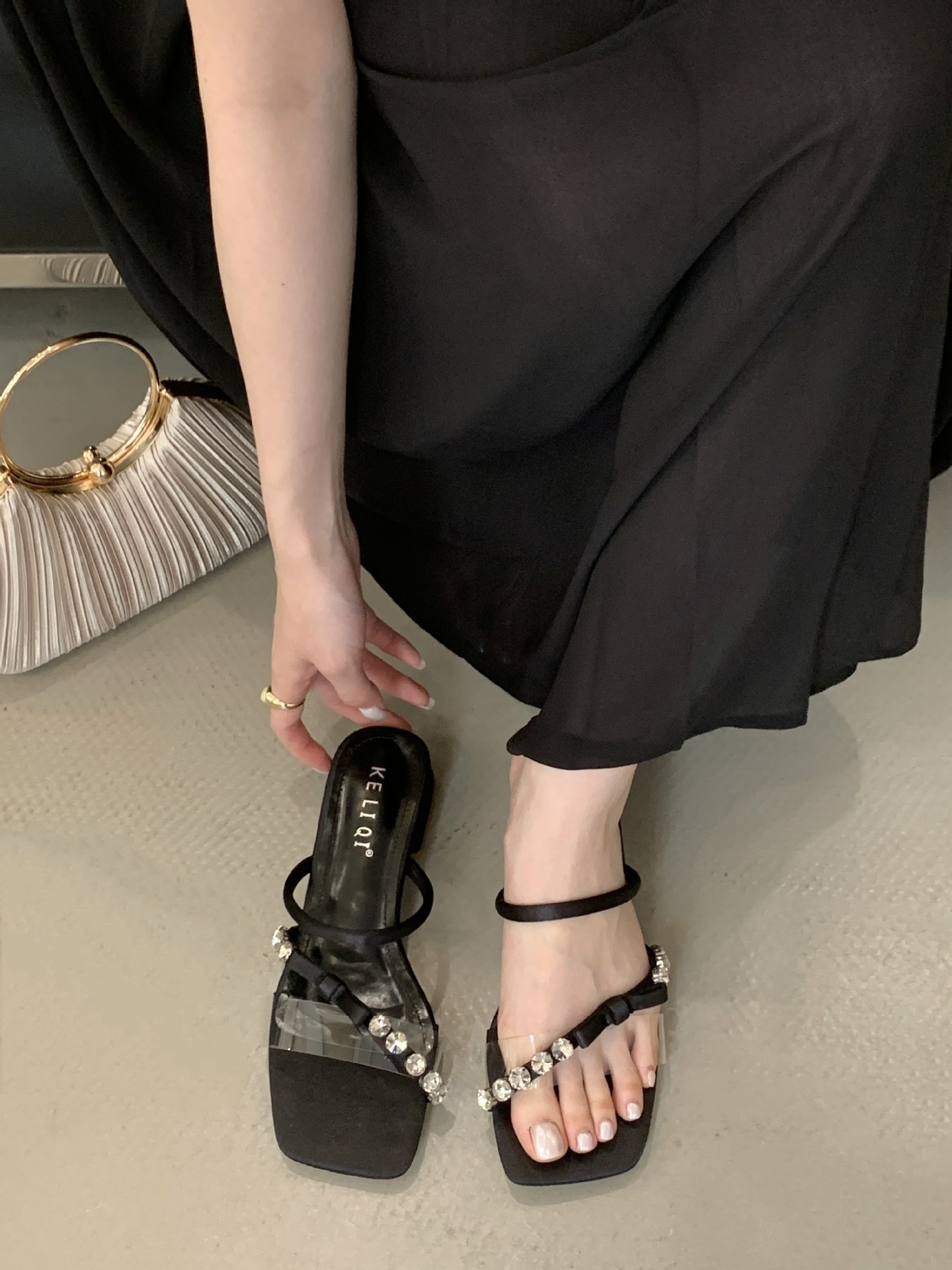 여성용 프렌치 두꺼운 굽 샌들, 아우터용 샌들, 2025 여름 스타일 요정 스타일 라인스톤 스트랩 슬리퍼스토어 가기