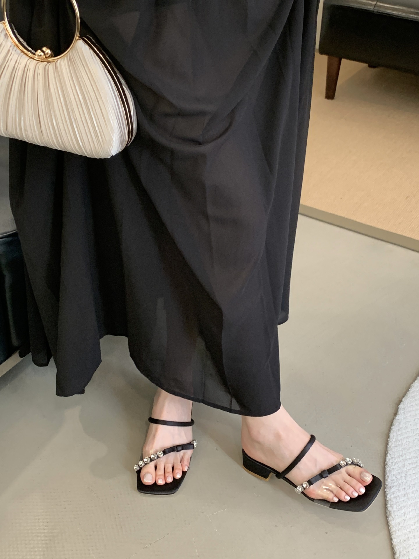 여성용 프렌치 두꺼운 굽 샌들, 아우터용 샌들, 2025 여름 스타일 요정 스타일 라인스톤 스트랩 슬리퍼