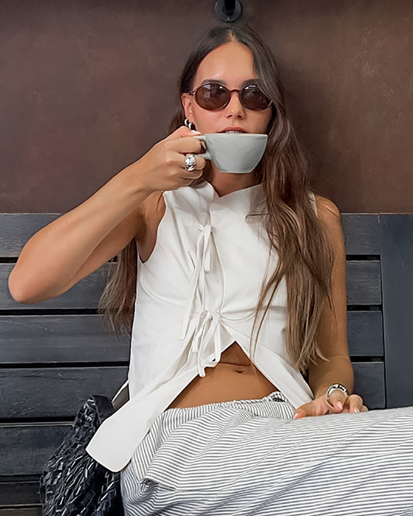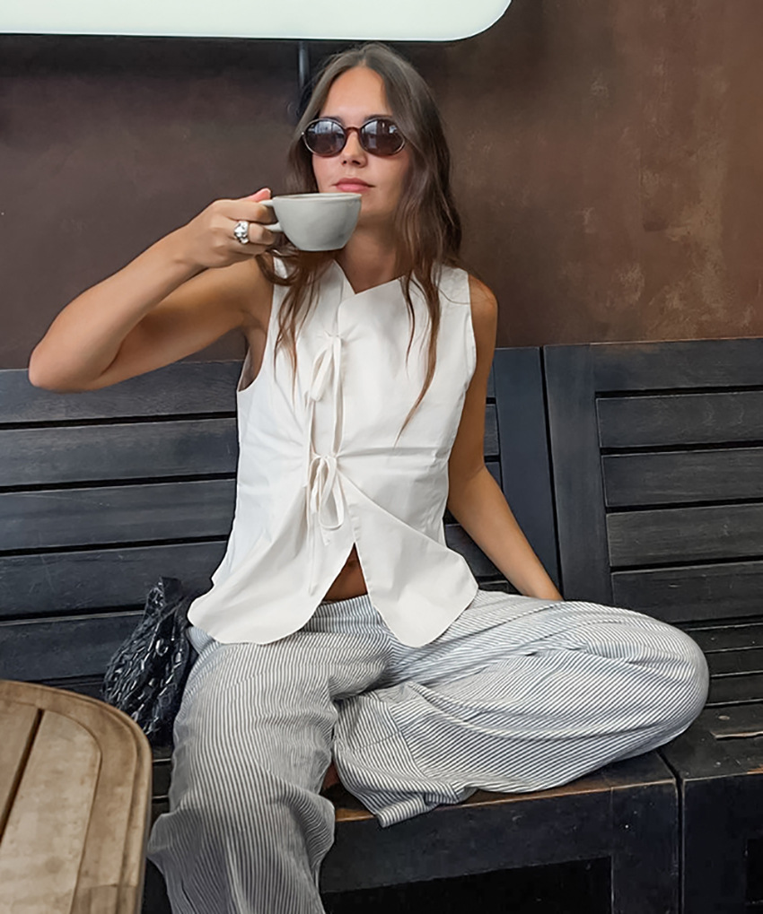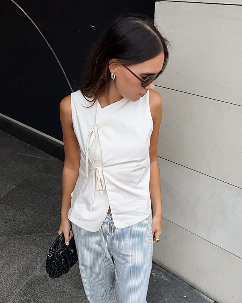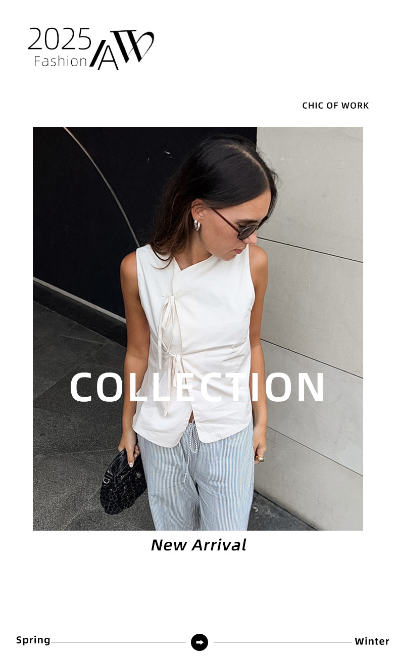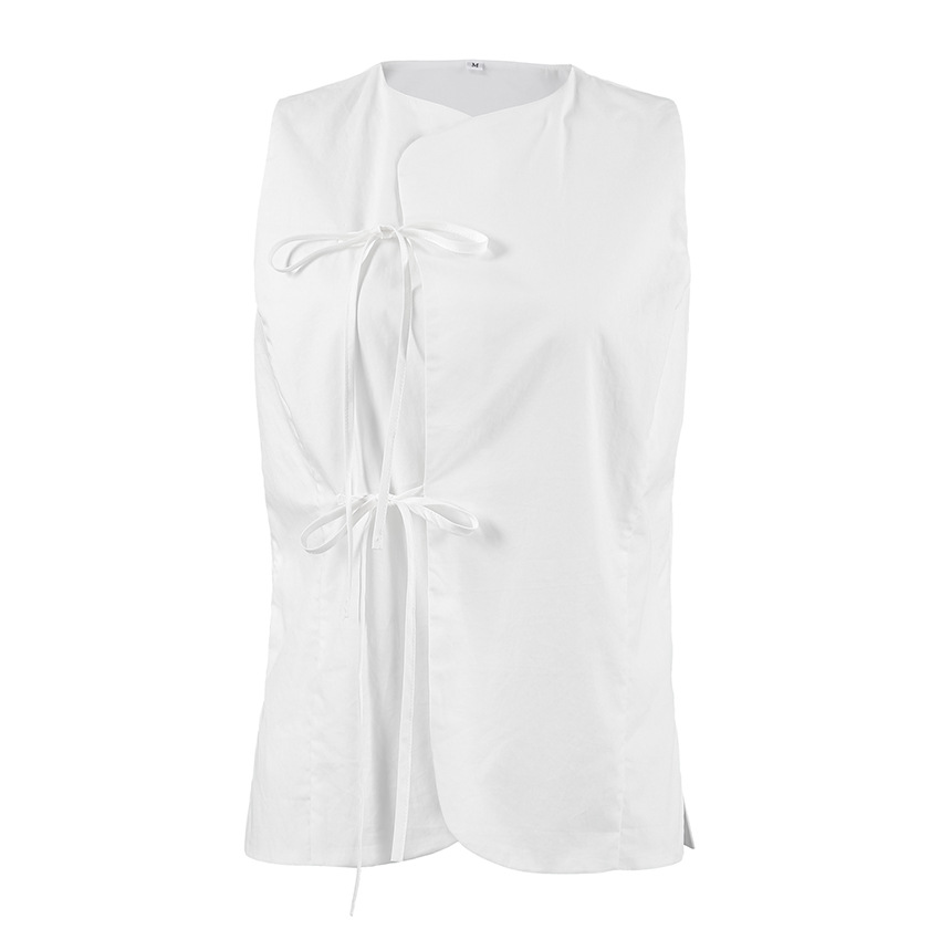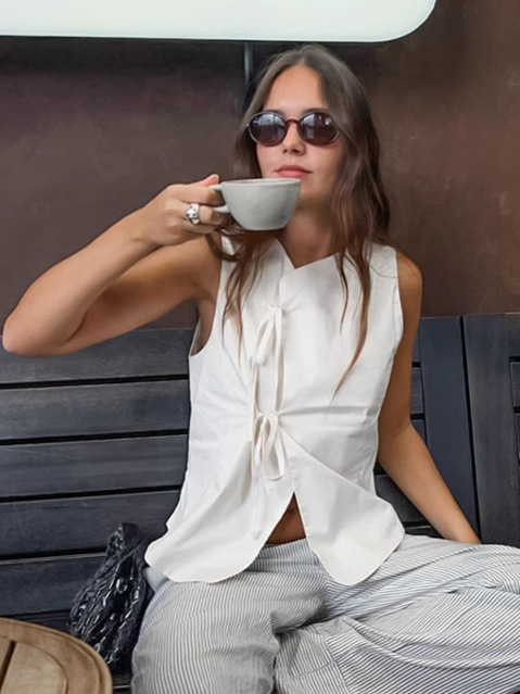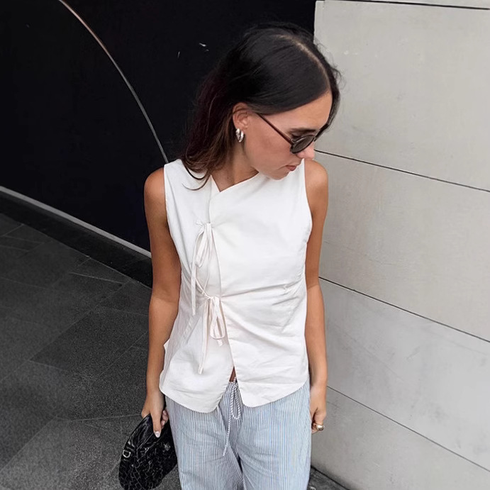 국경 2025 패션 새로운 레이스 업 카디건 민소매 면화 조끼 유럽과 미국의 느슨한 편안한 통근 올 매치 탑