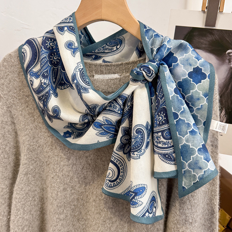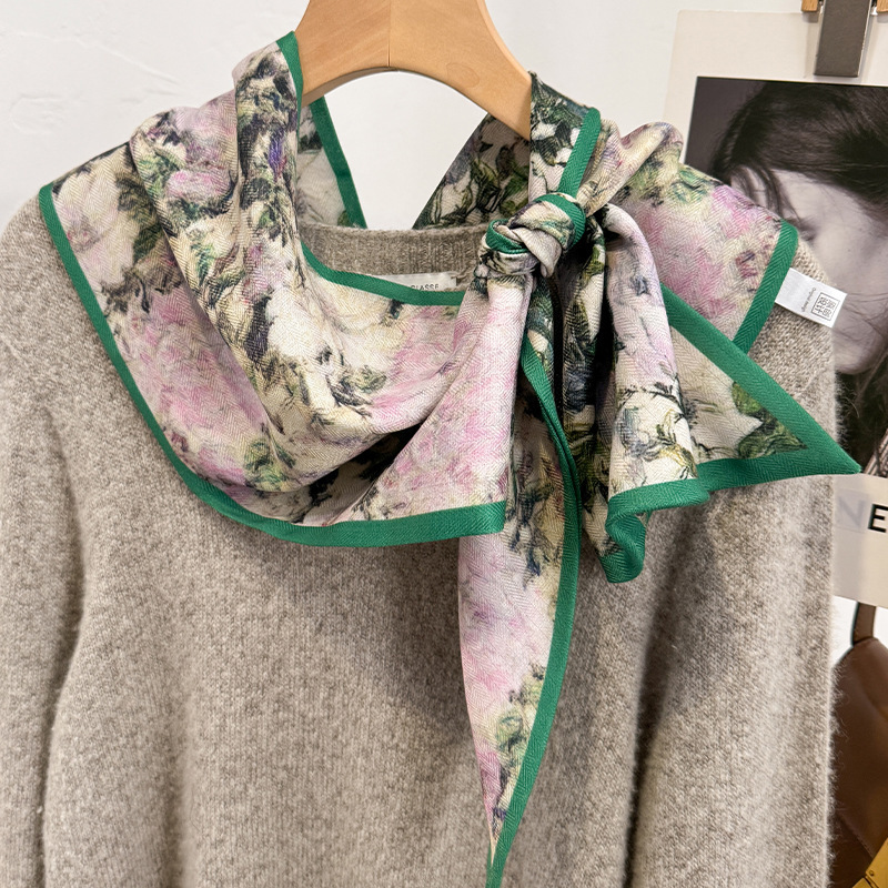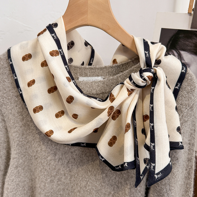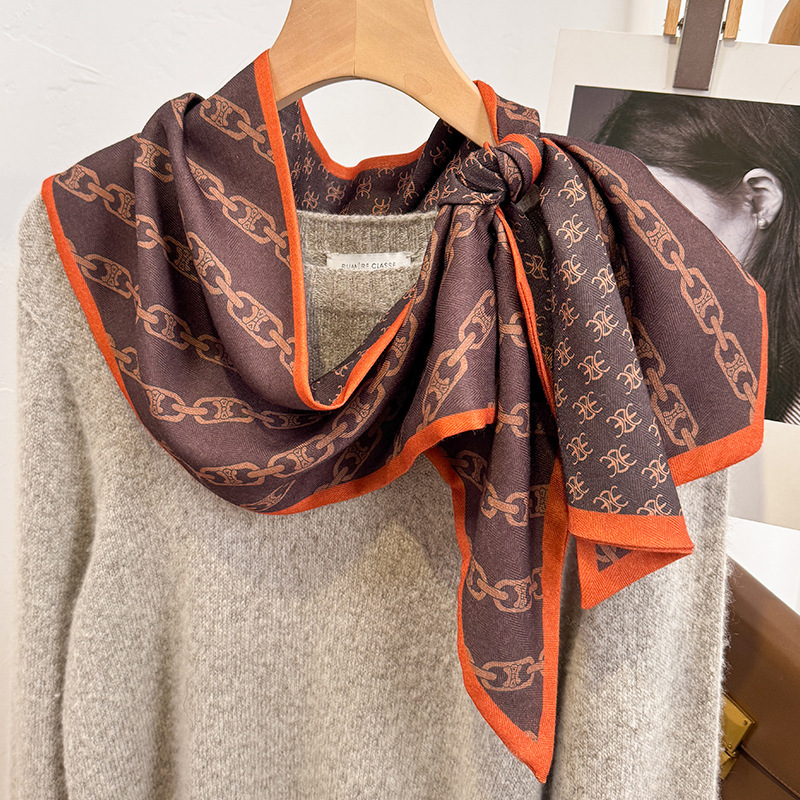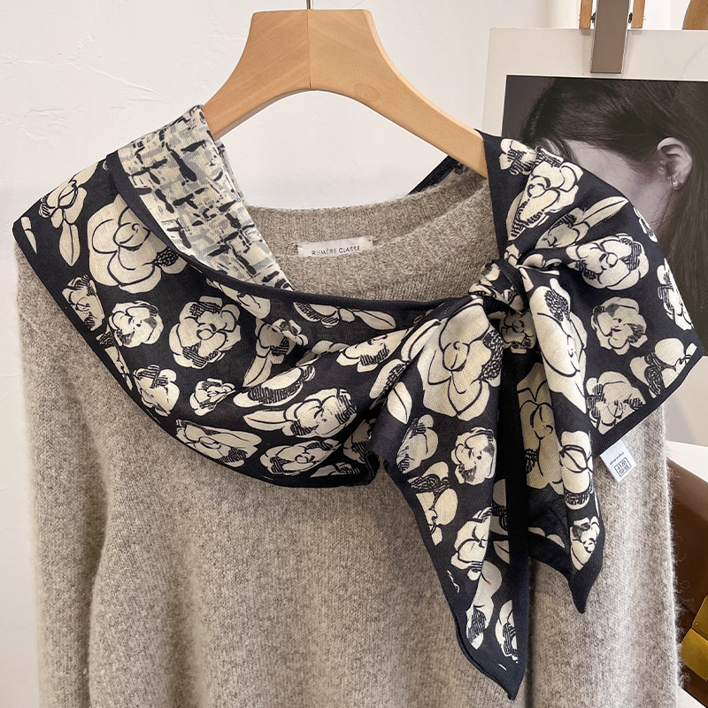 여성을 위한 고급 양면 이중층 모조 실크 울 스카프, 봄, 가을, 겨울용 긴 대각선 스카프, 대형 리본, 다용도 스카프