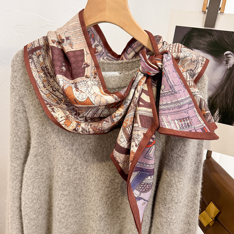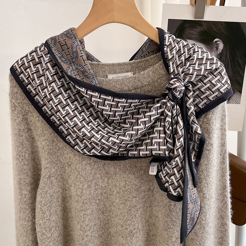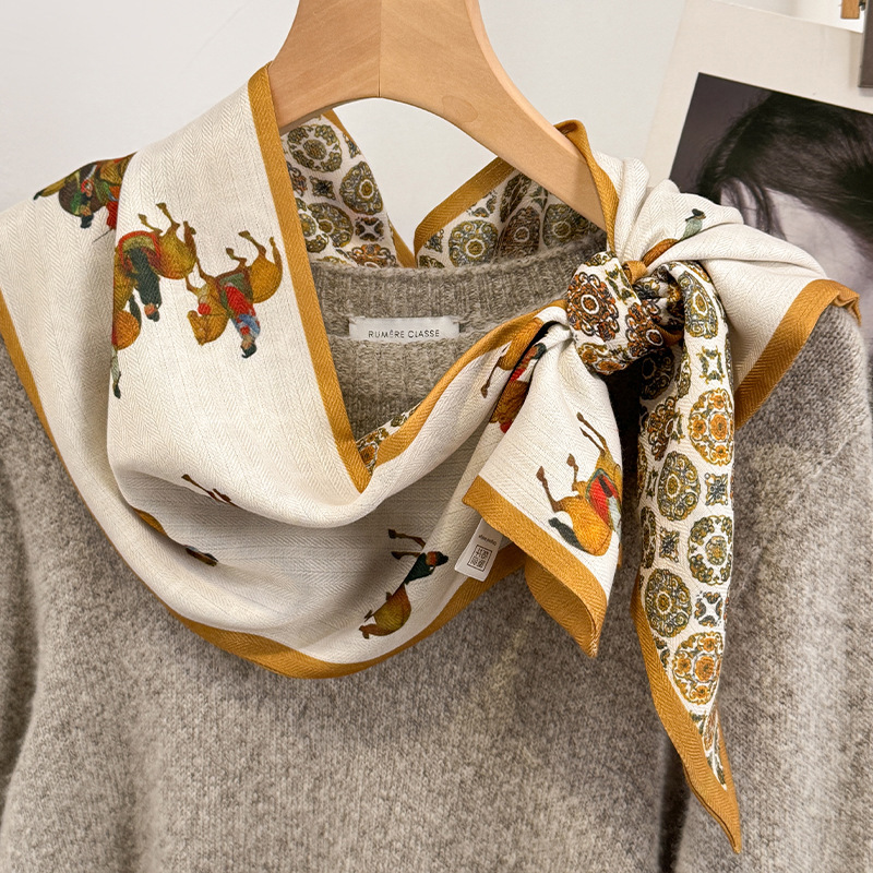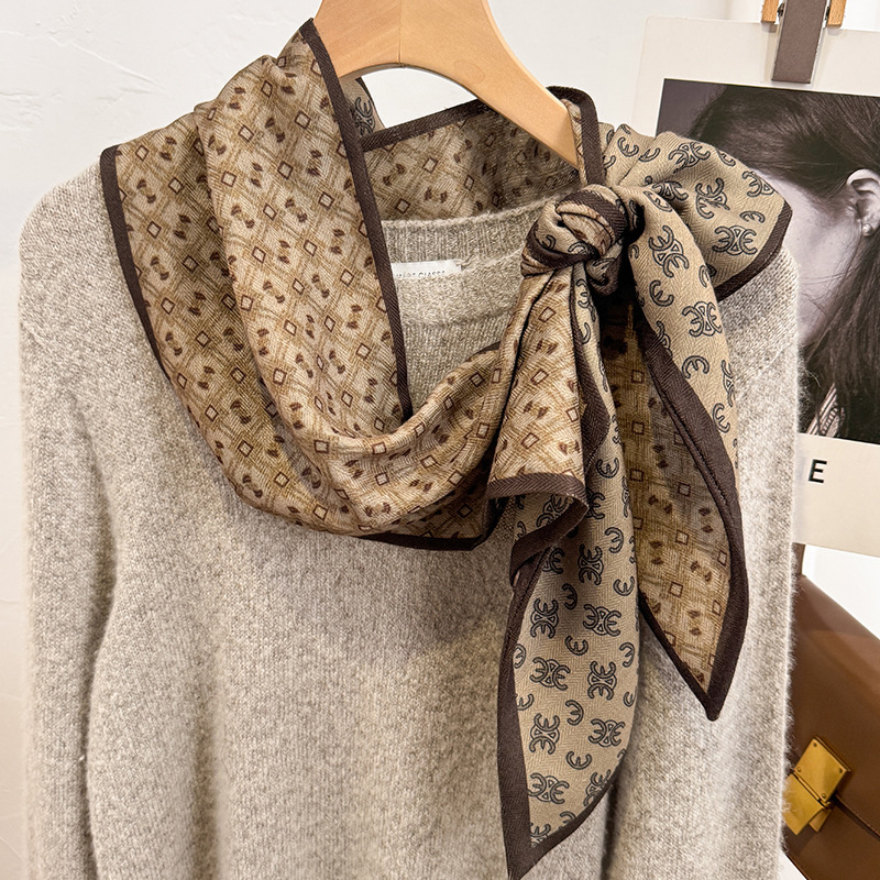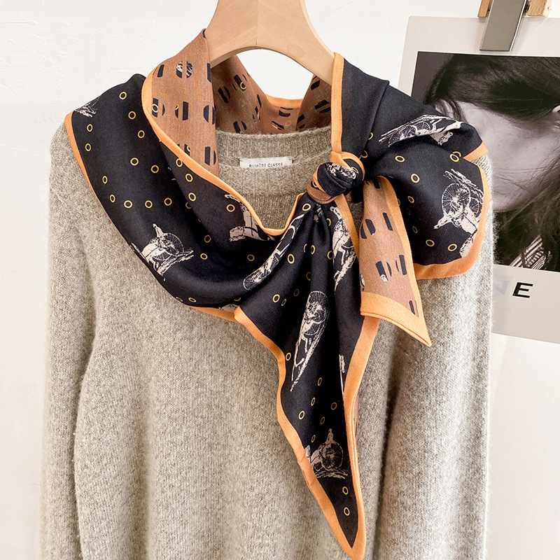 여성을 위한 고급 양면 이중층 모조 실크 울 스카프, 봄, 가을, 겨울용 긴 대각선 스카프, 대형 리본, 다용도 스카프