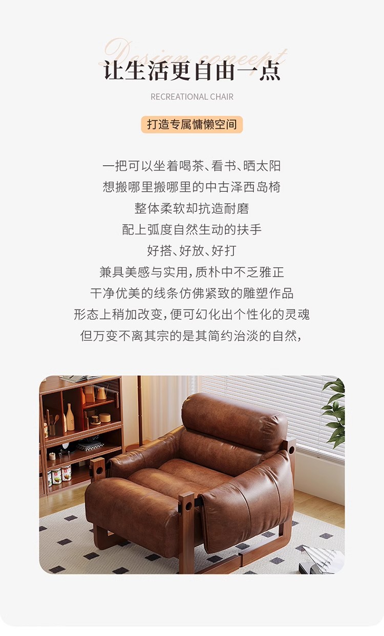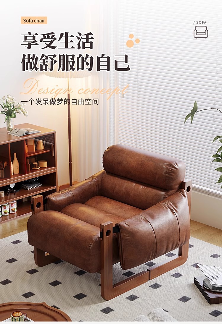 1인용 소파 의자, 저지 섬 의자, 거실 중세 스타일 가죽 소파 의자, 레저 게으른 의자, 원목 복고풍 안락 의자스토어 가기