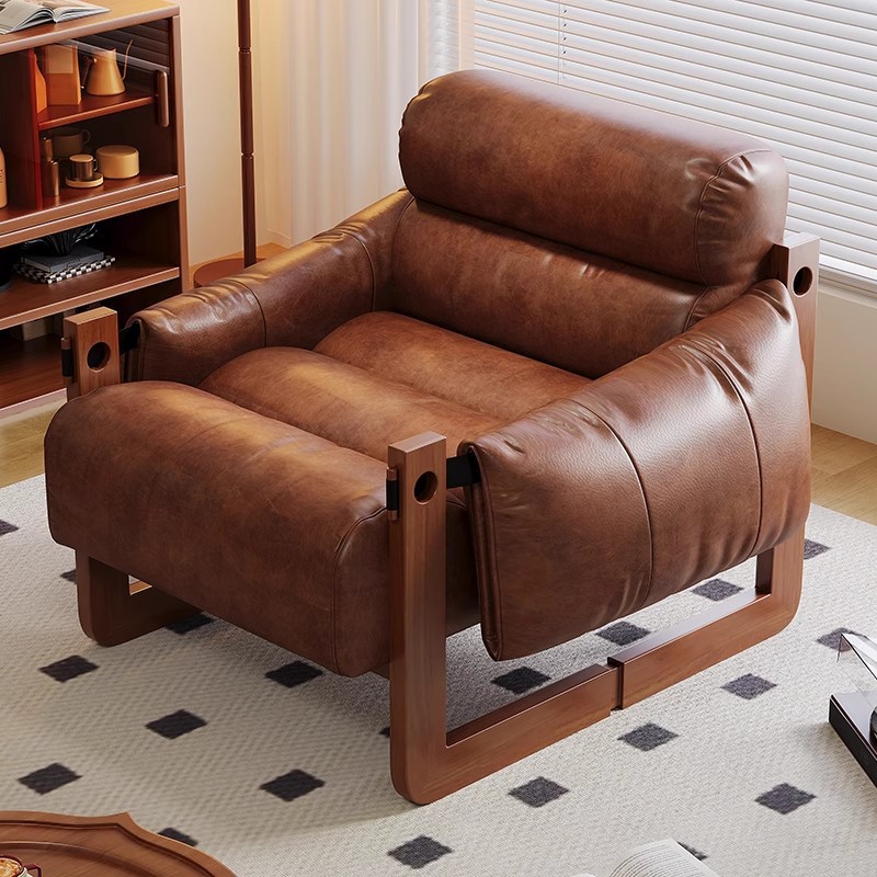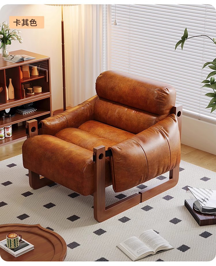 1인용 소파 의자, 저지 섬 의자, 거실 중세 스타일 가죽 소파 의자, 레저 게으른 의자, 원목 복고풍 안락 의자