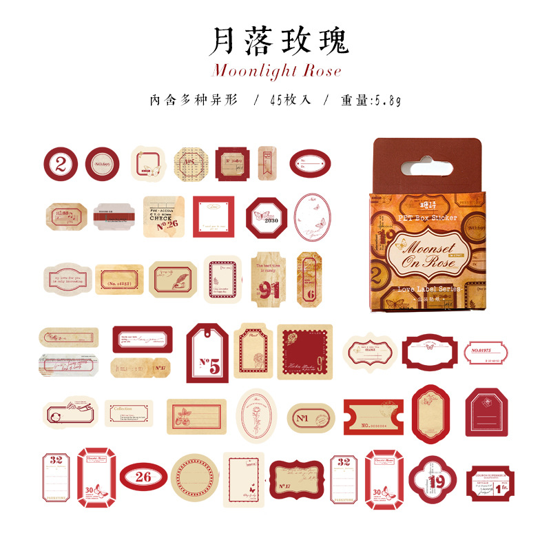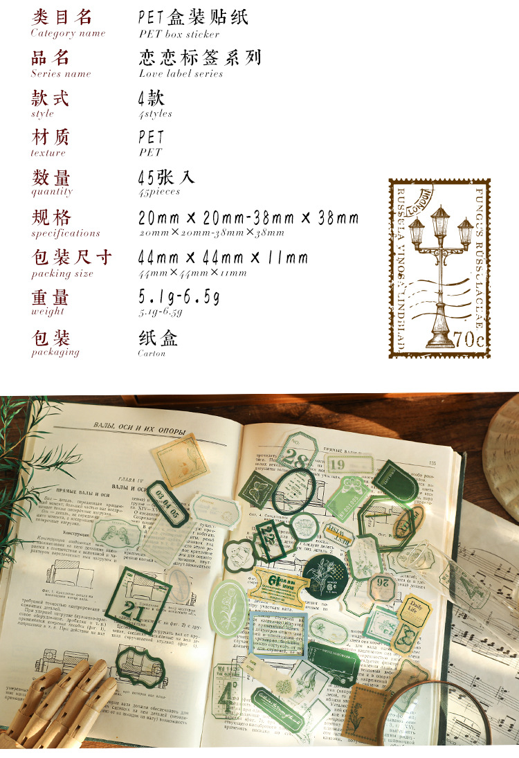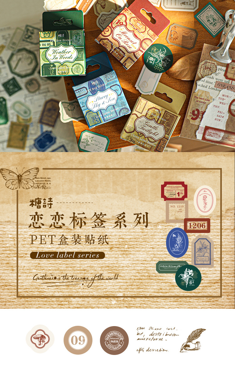 설탕시 박스 스티커 러브 라벨 시리즈 복고풍 PET 방수 마크 메시지 손 계정 DIY 소재 4