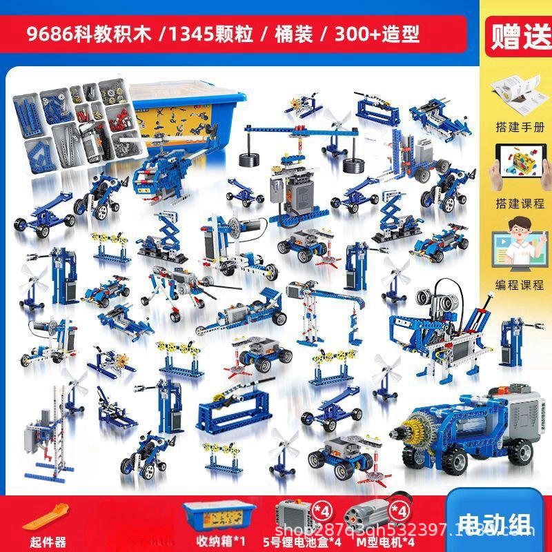 • [완전한 재미를 위한 풀 세트] 1345개 + 전기 세트 4개 + 원격 제어 프로그래밍 + 대형 저장 버킷