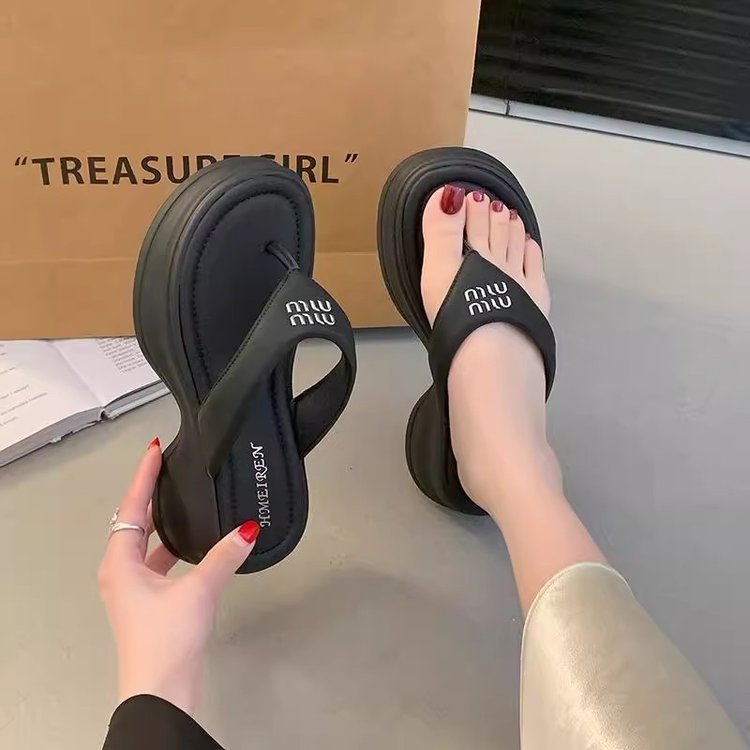 여성을위한 두꺼운 밑창 비치 샌들 2025 여름 새로운 스타일 미끄럼 방지 겉옷 패션 플립 플롭 작은 사람들을위한 슬리퍼