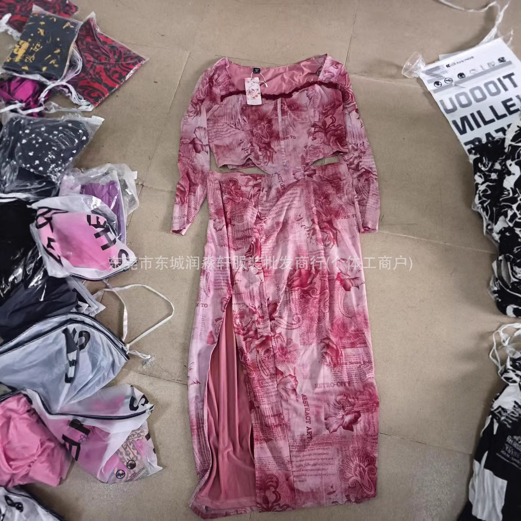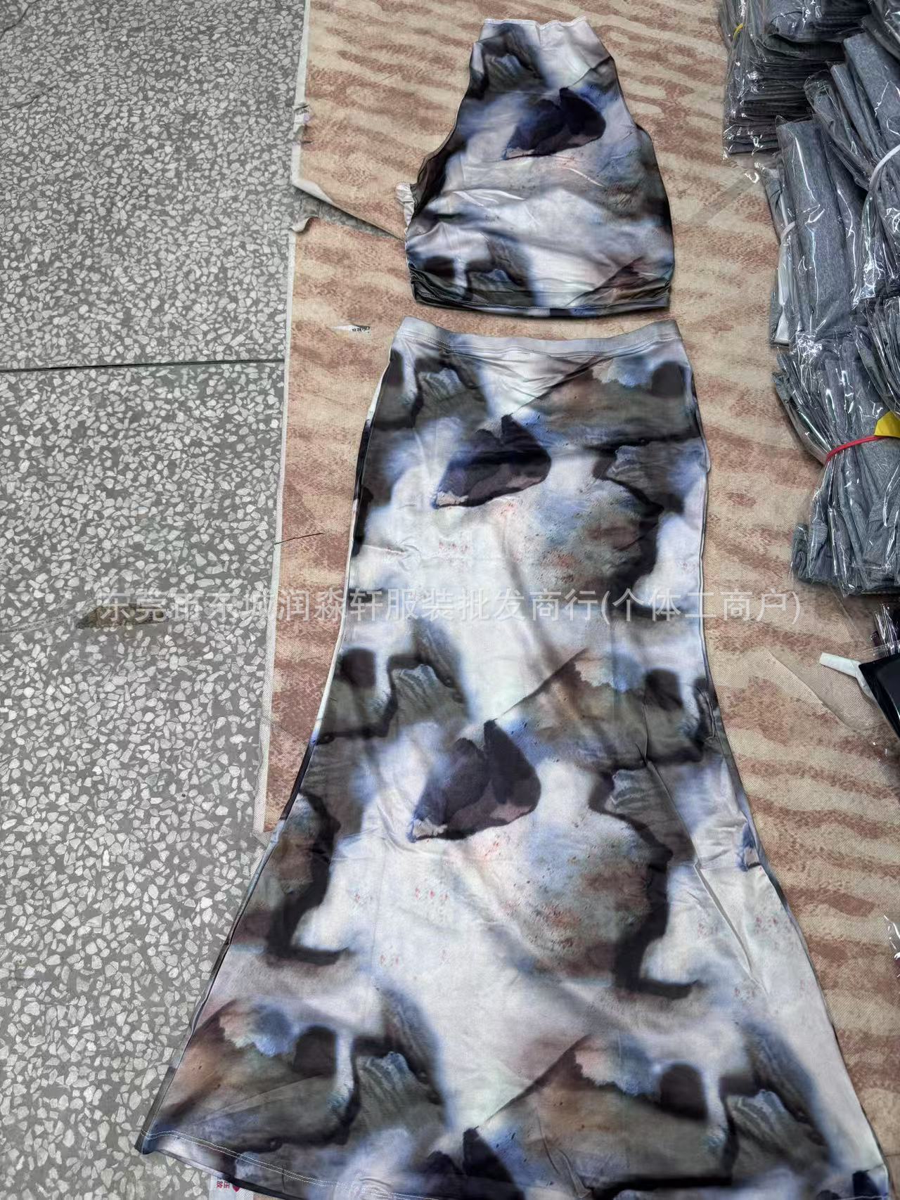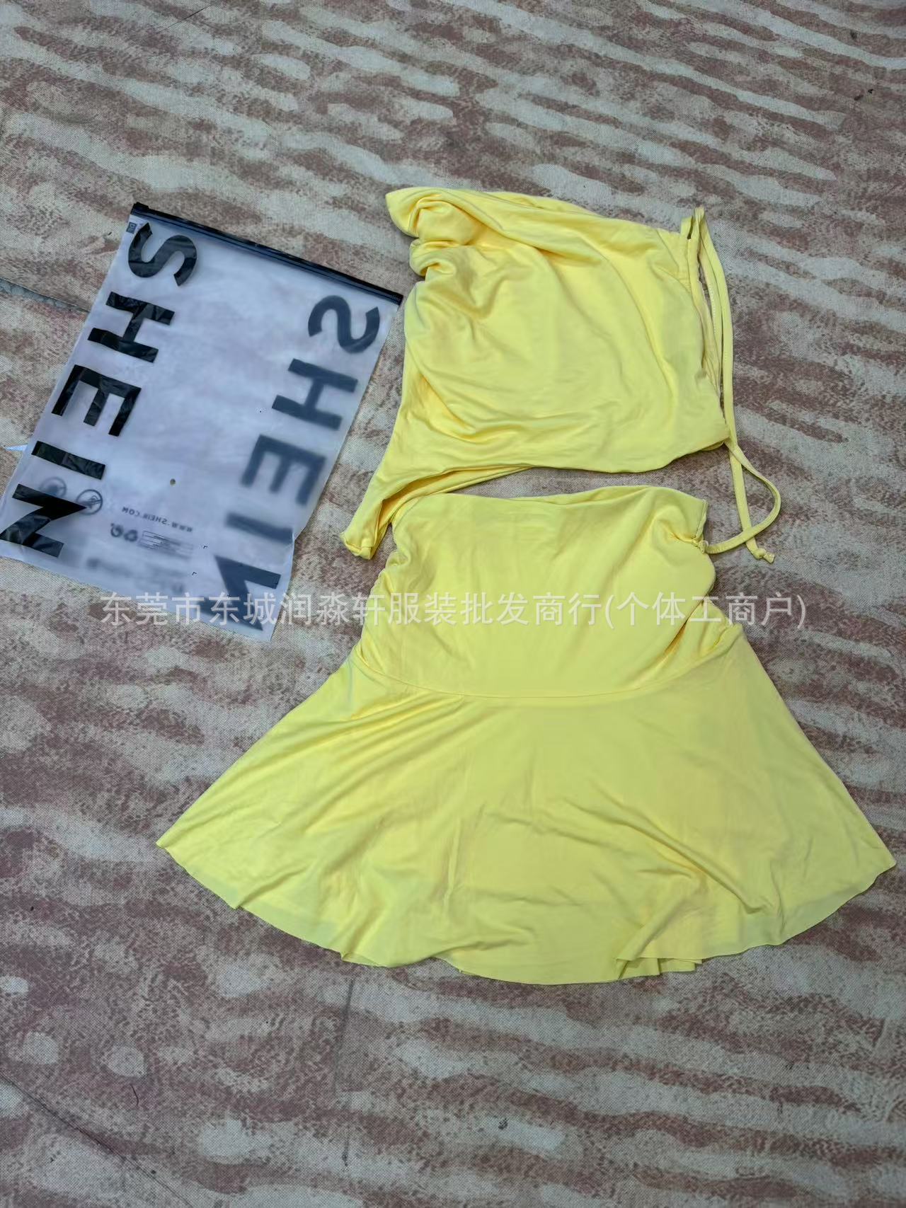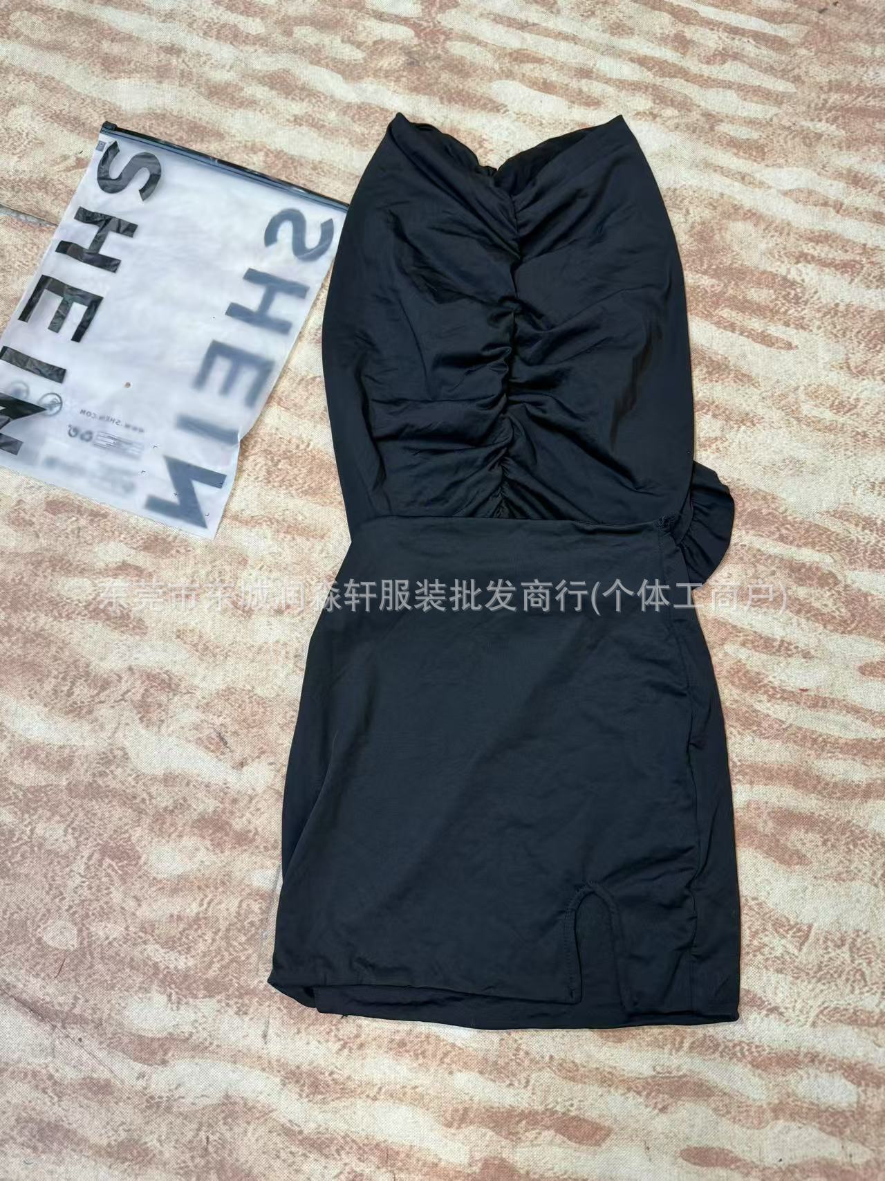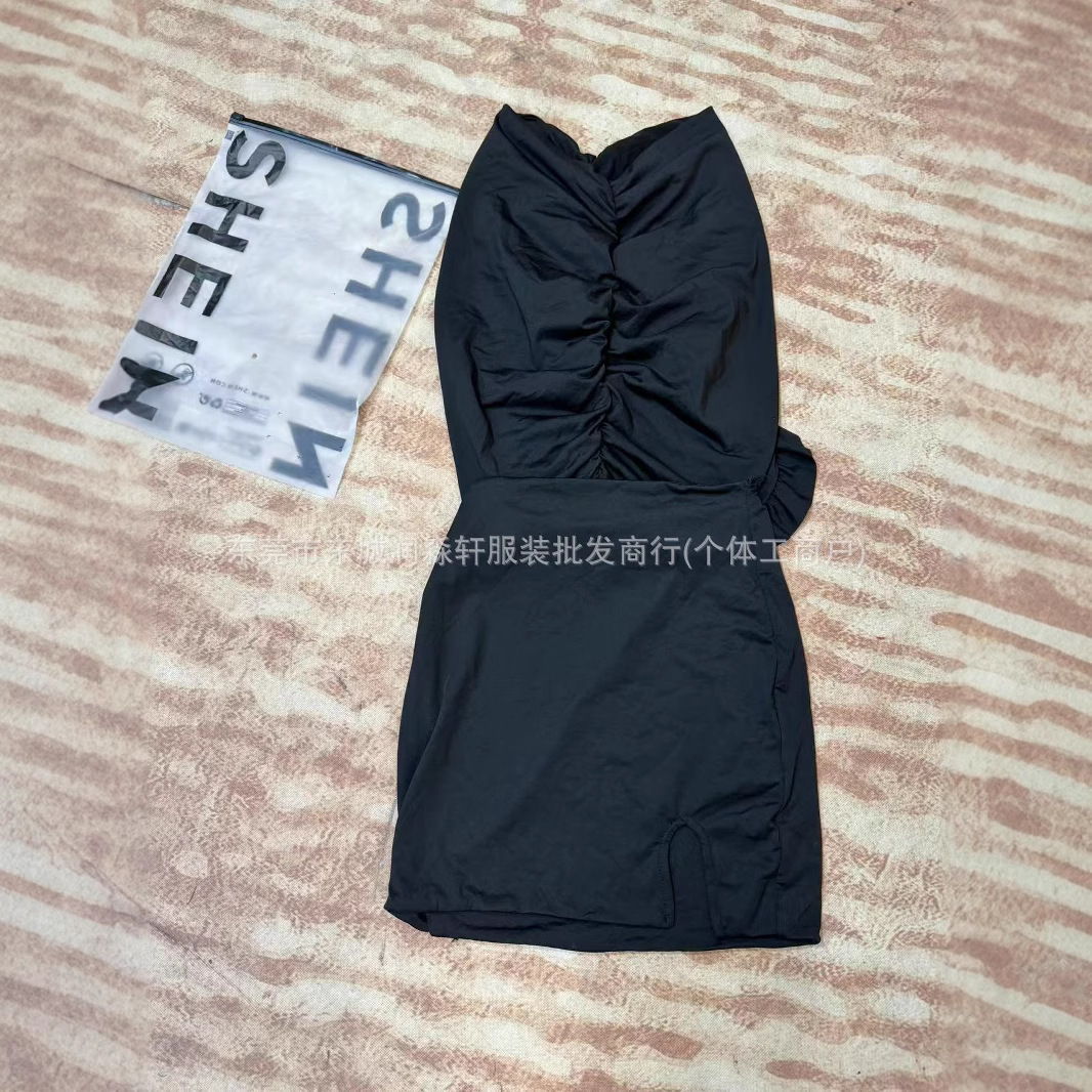 Shein 세트 대외 무역 유럽과 미국 여성 패션 핫 소녀 섹시한 탑 엉덩이 주름 치마 세트 도매스토어 가기