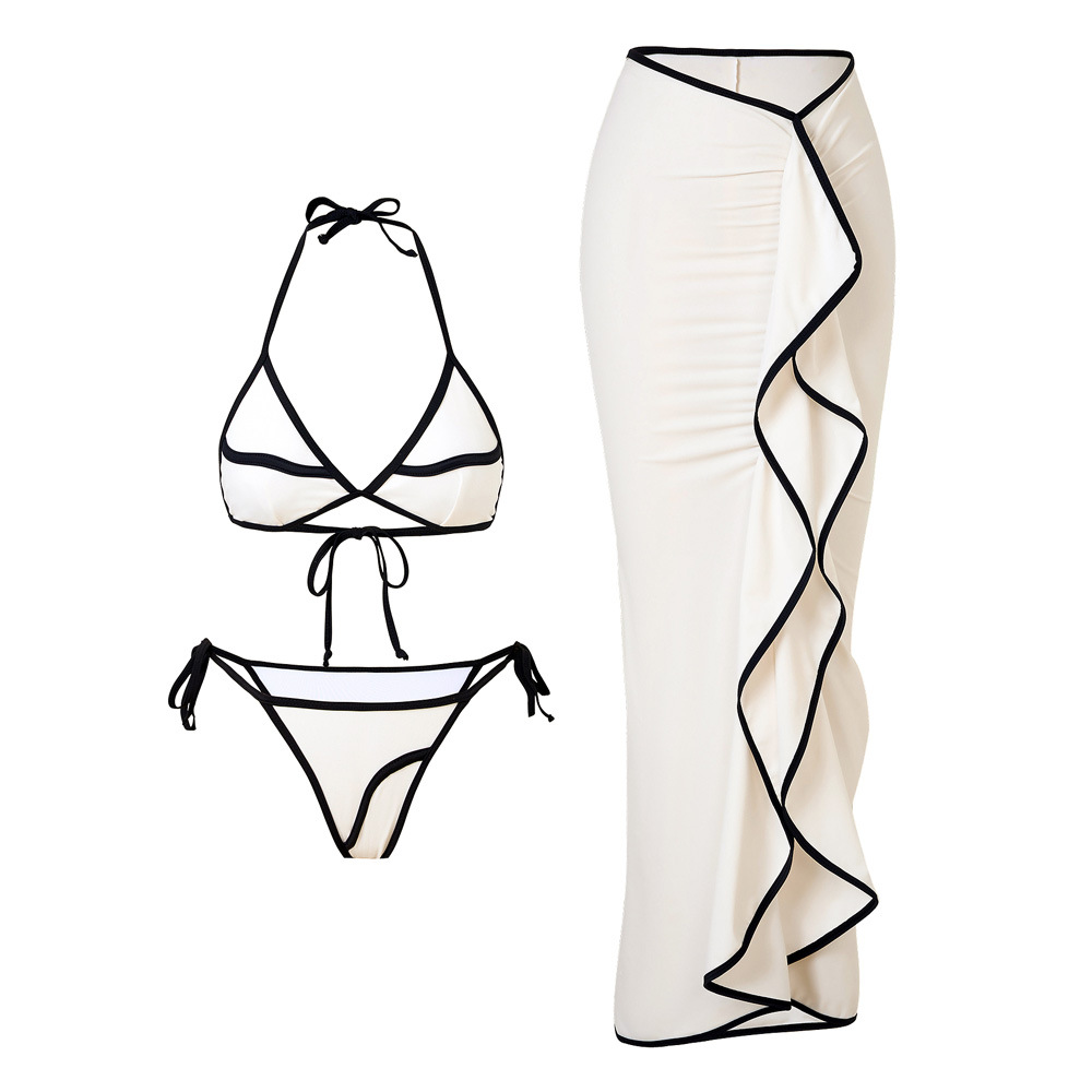 스팟 유럽과 미국 국경 간 2025 새로운 수영복 여성 스플릿 솔리드 컬러 3 피스 비키니 나일론 스커트 수영복 세트