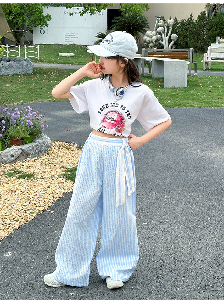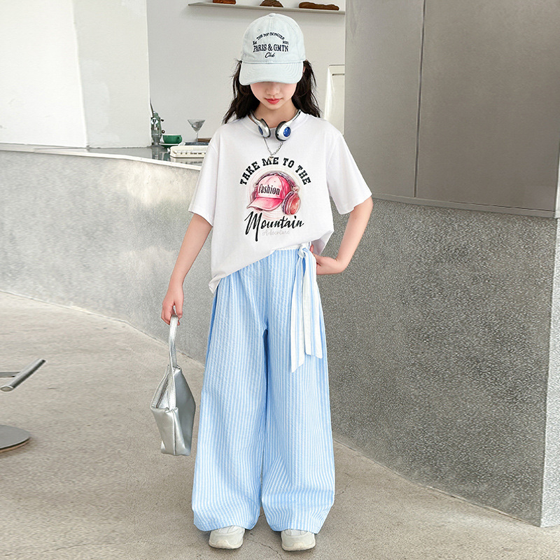 소녀 여름 반팔 체크 무늬 바지 세트 2025 새로운 어린이 스타일 인쇄 아동복 세트스토어 가기