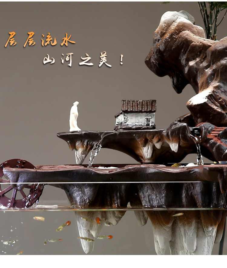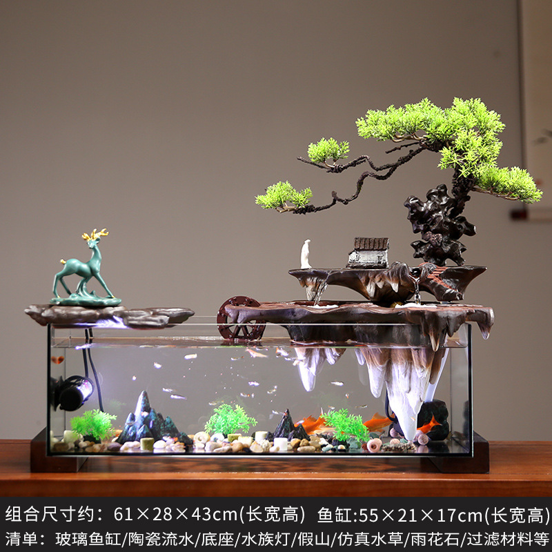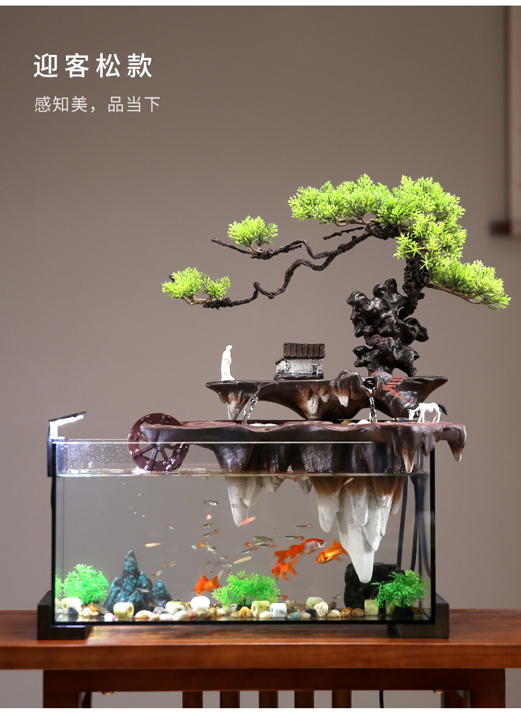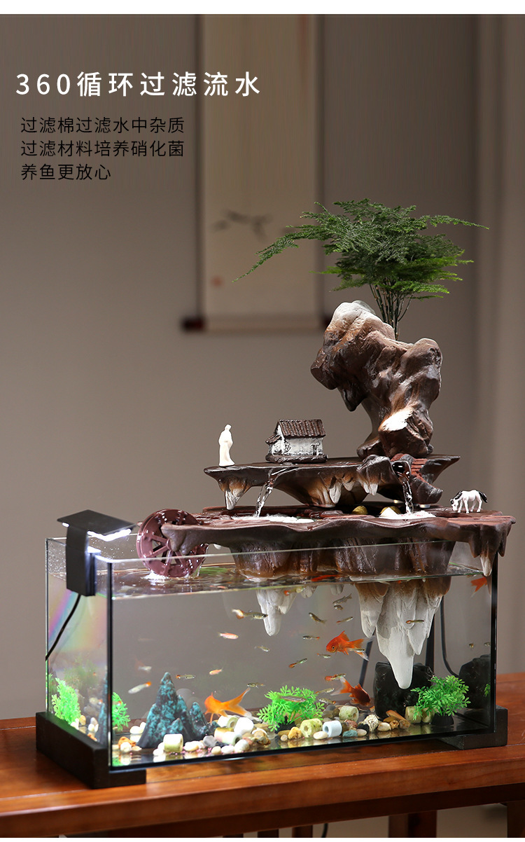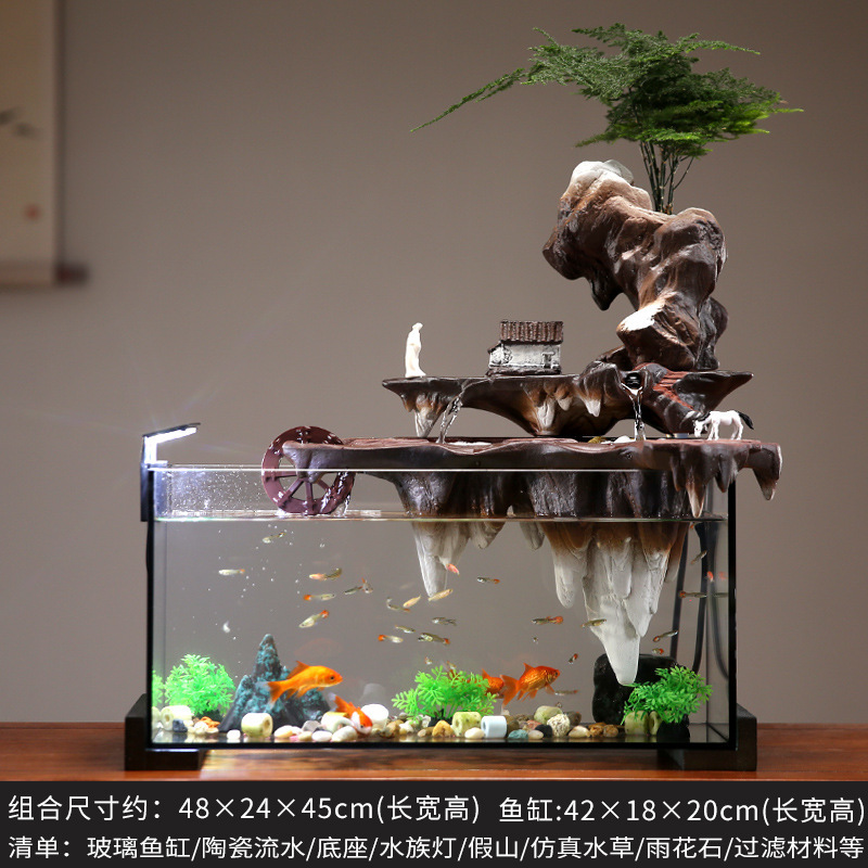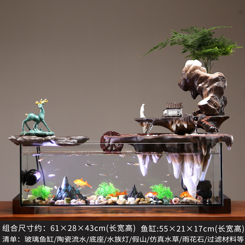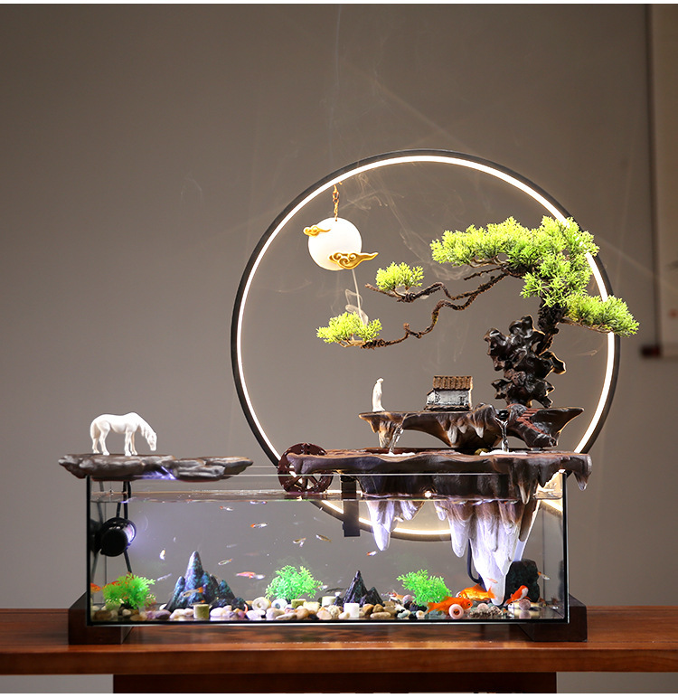 순환 워터 휠 마이크로 풍경 장식 유리 물고기 탱크 흐르는 물 장식품 홈 거실 사무실 집들이 오프닝 선물