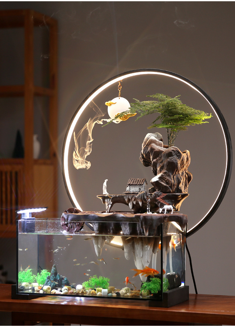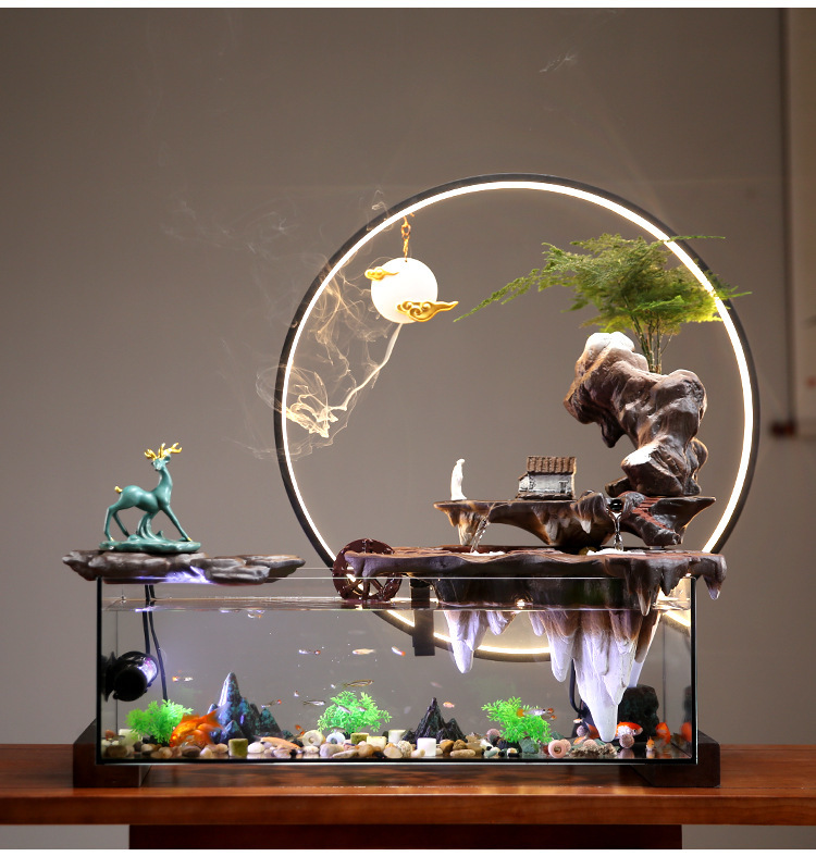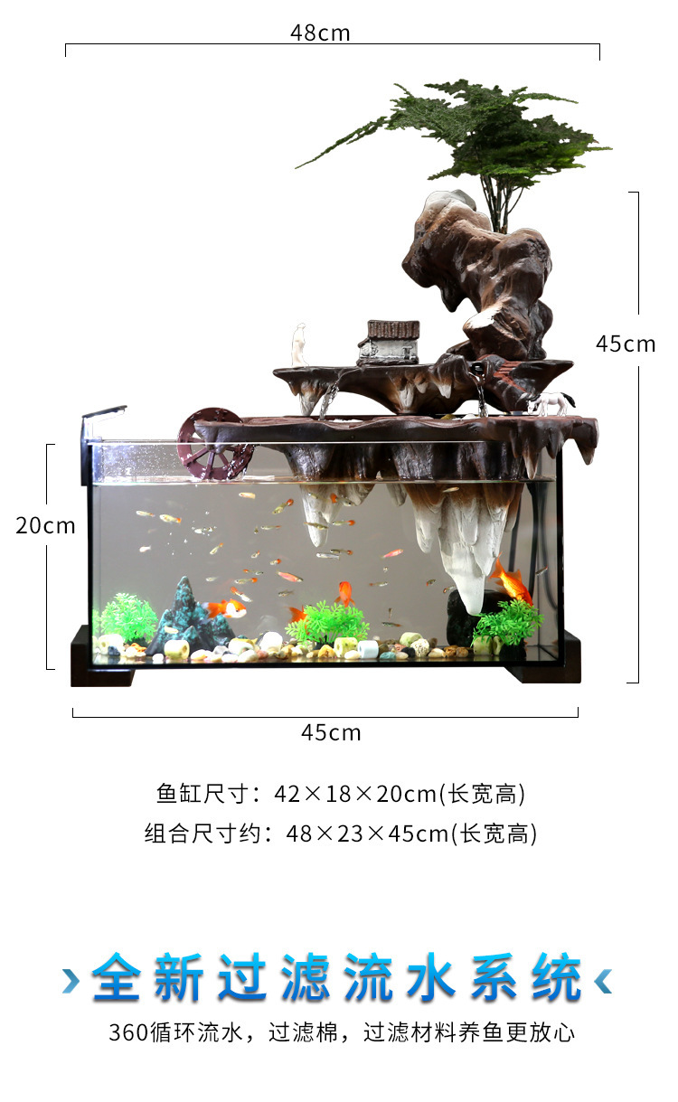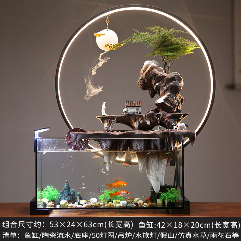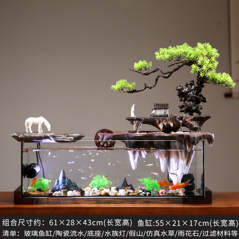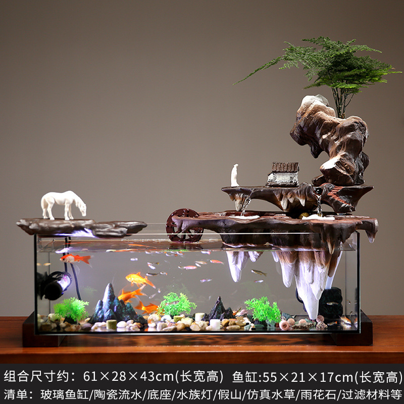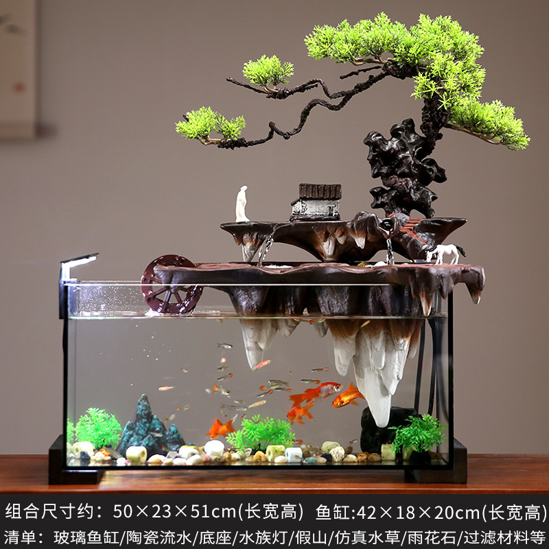 순환 워터 휠 마이크로 풍경 장식 유리 물고기 탱크 흐르는 물 장식품 홈 거실 사무실 집들이 오프닝 선물