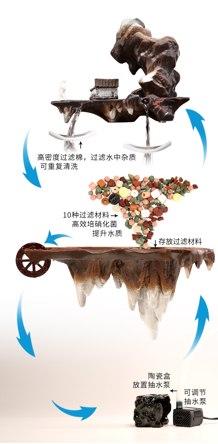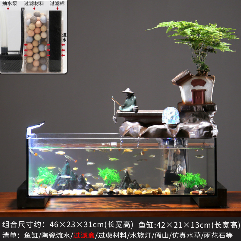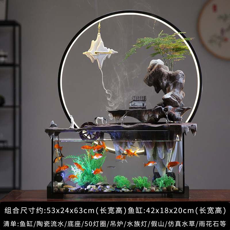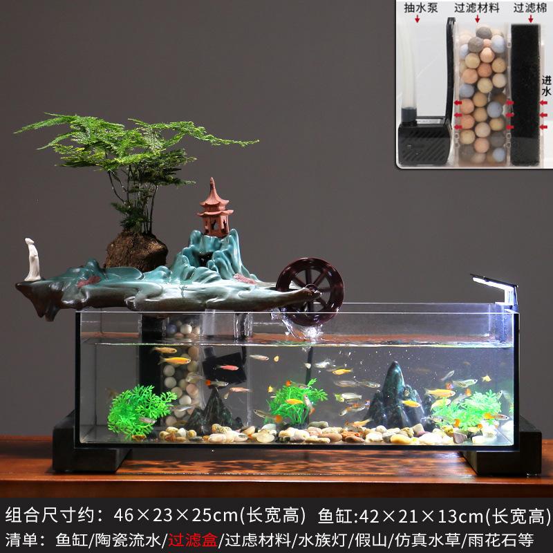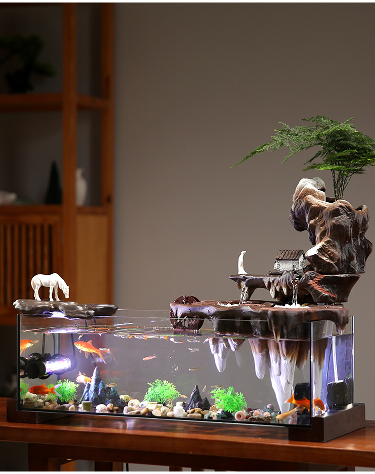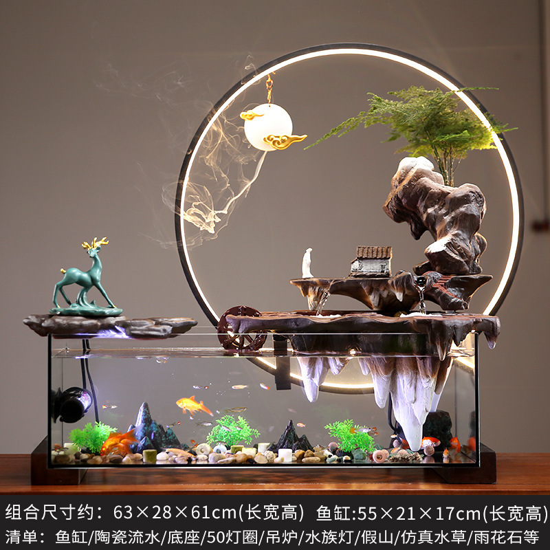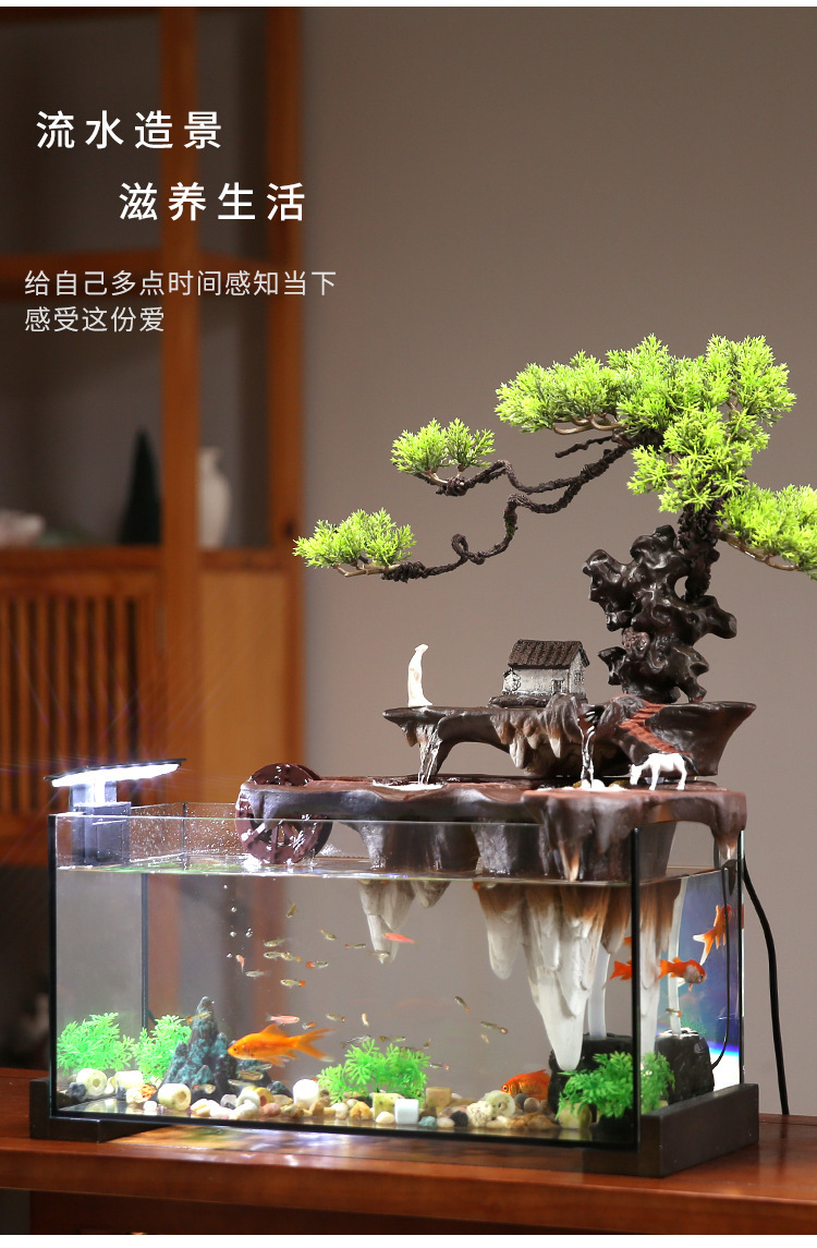 순환 워터 휠 마이크로 풍경 장식 유리 물고기 탱크 흐르는 물 장식품 홈 거실 사무실 집들이 오프닝 선물