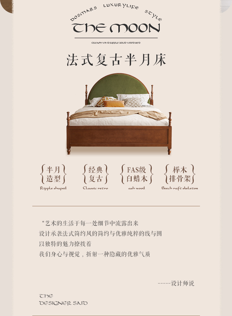 중세 스타일 복고풍 침대 1.8m 대형 침대 작은 아파트 가정용 더블 프렌치 하프 문 북유럽 애쉬 전체 단단한 나무 침대스토어 가기