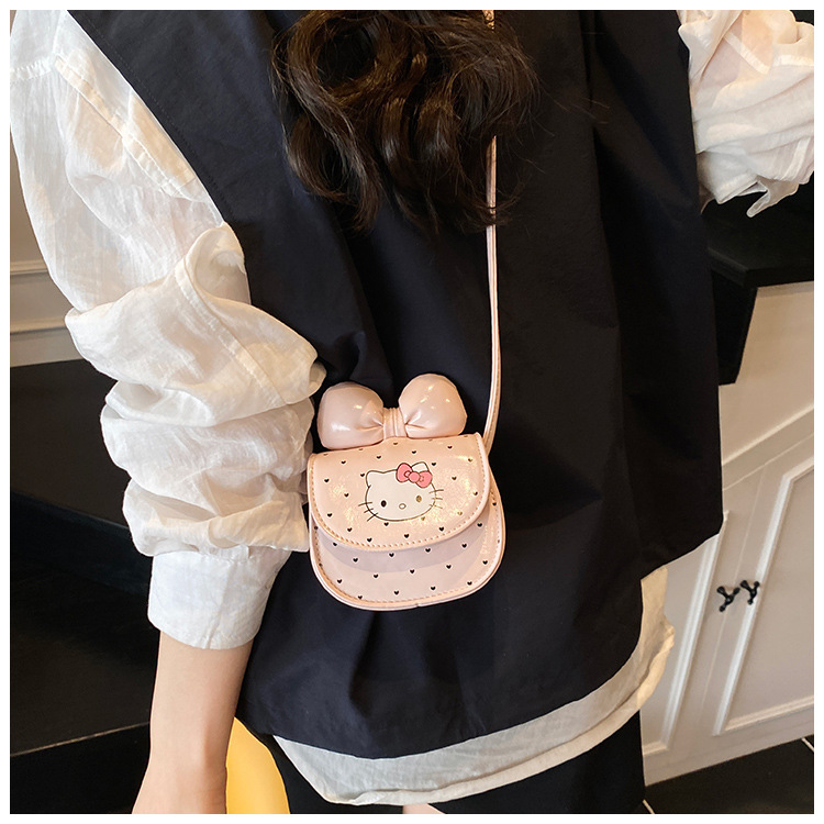 헬로 키티 미니 크로스 바디 작은 가방 귀여운 활 소녀 달콤한 키티 작은 사첼 동전 지갑 아기 소녀