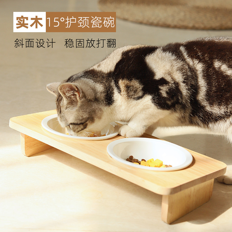 공장 직접 공급 고양이 그릇 스테인레스 스틸 안티 팁 비 검은 턱 짧은 다리 목 보호 고양이 그릇 애완 동물 용품 국경 간 핫 스타일스토어 가기