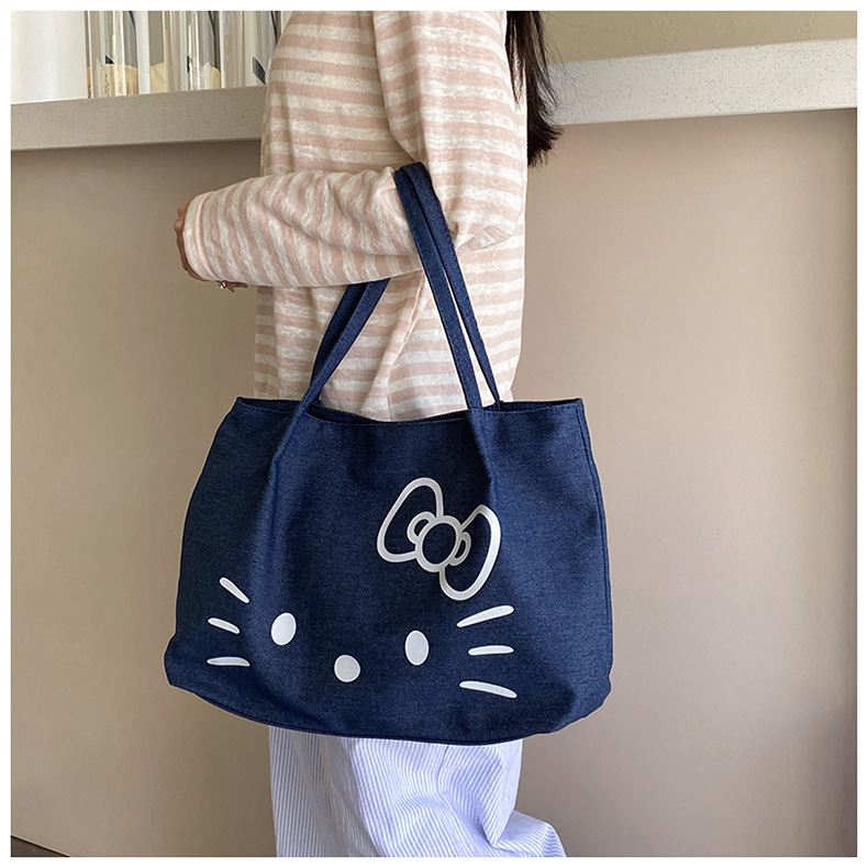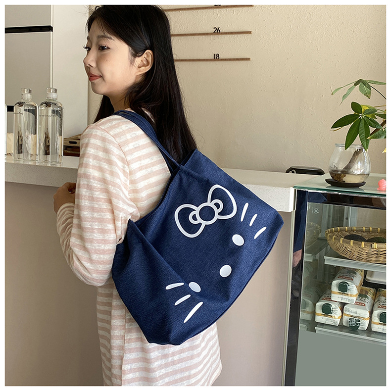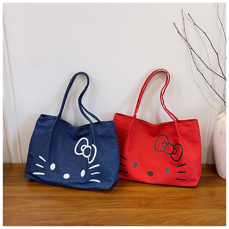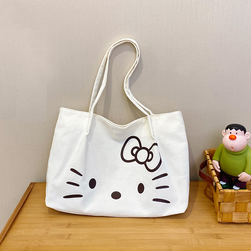 헬로 키티 헬로 키티 캔버스 토트 백 여성 휴대용 귀여운 대용량 새로운 올 매치 언더암 숄더 백