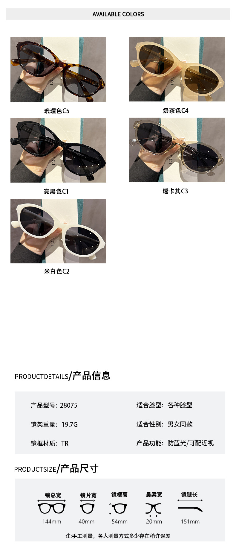 28075 여름 새로운 유럽과 미국 스타일의 TR 선글라스 남성과 여성 도매 높은 감각 흰 우유 차 선글라스스토어 가기
