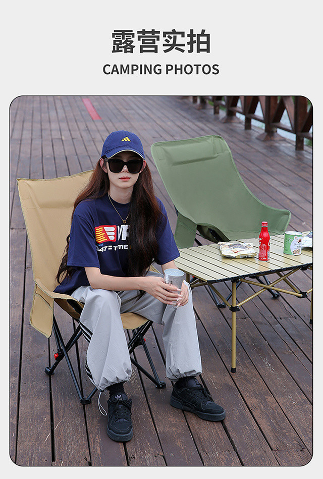 • 카키색 달 의자 2개, 조절 가능한 등받이 1개(수납 가방 포함)