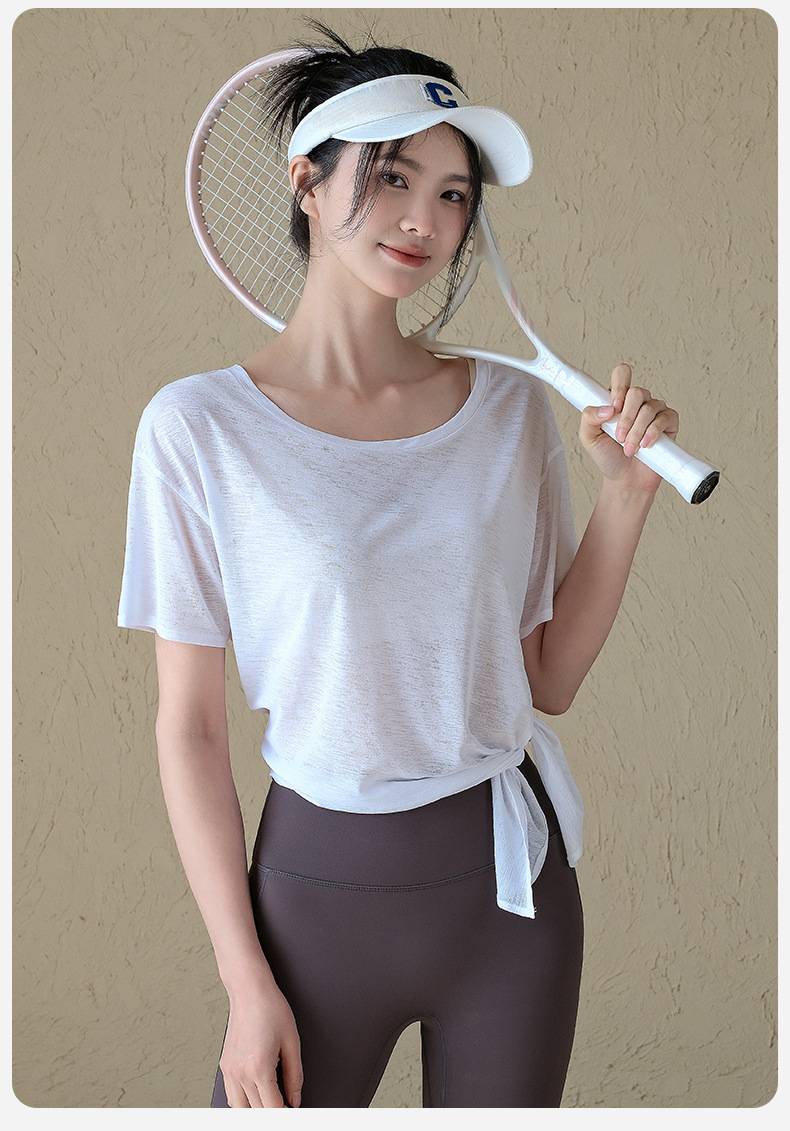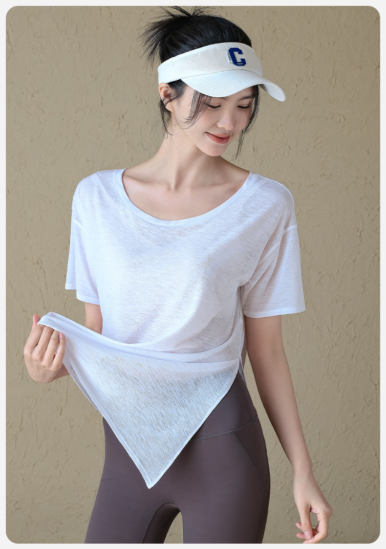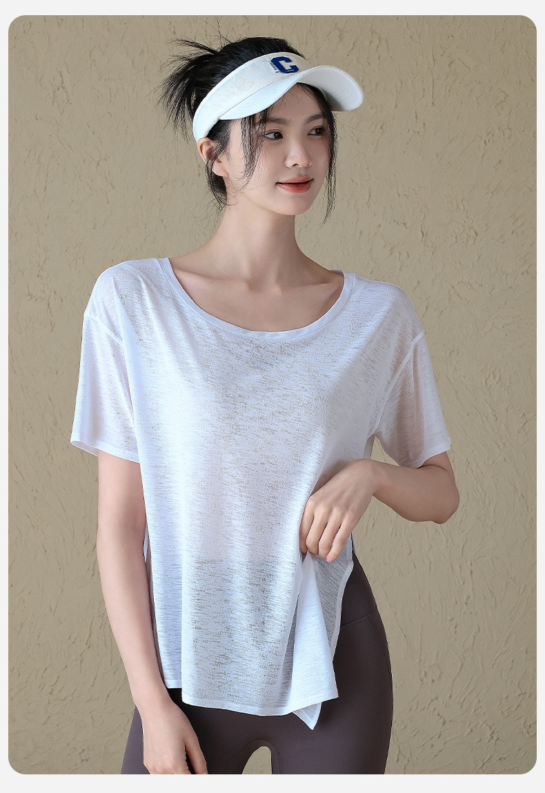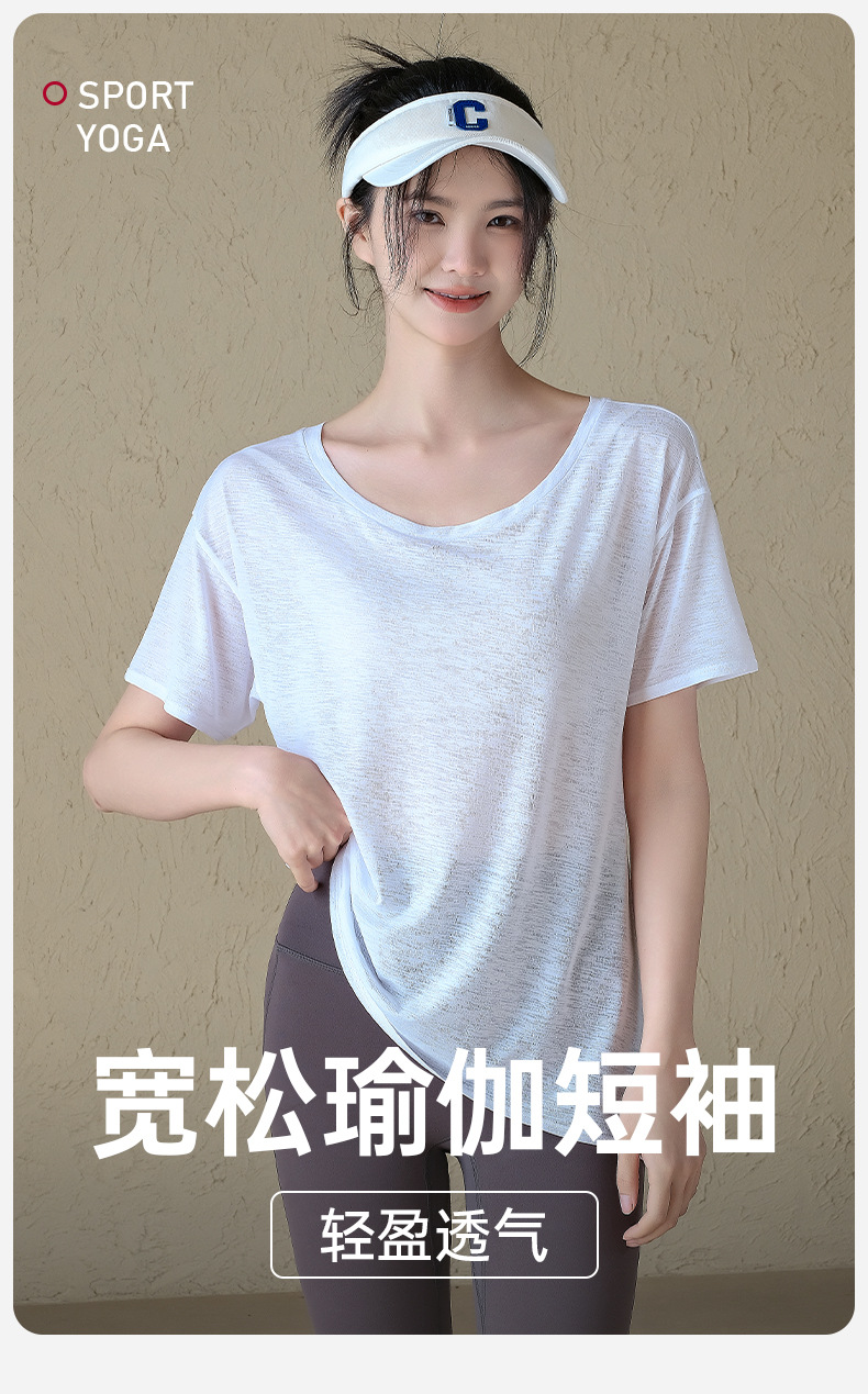 느슨한 경량 통기성 요가 블라우스 여성 여름 필라테스 훈련 피트니스 티셔츠 달리기 짧은 소매