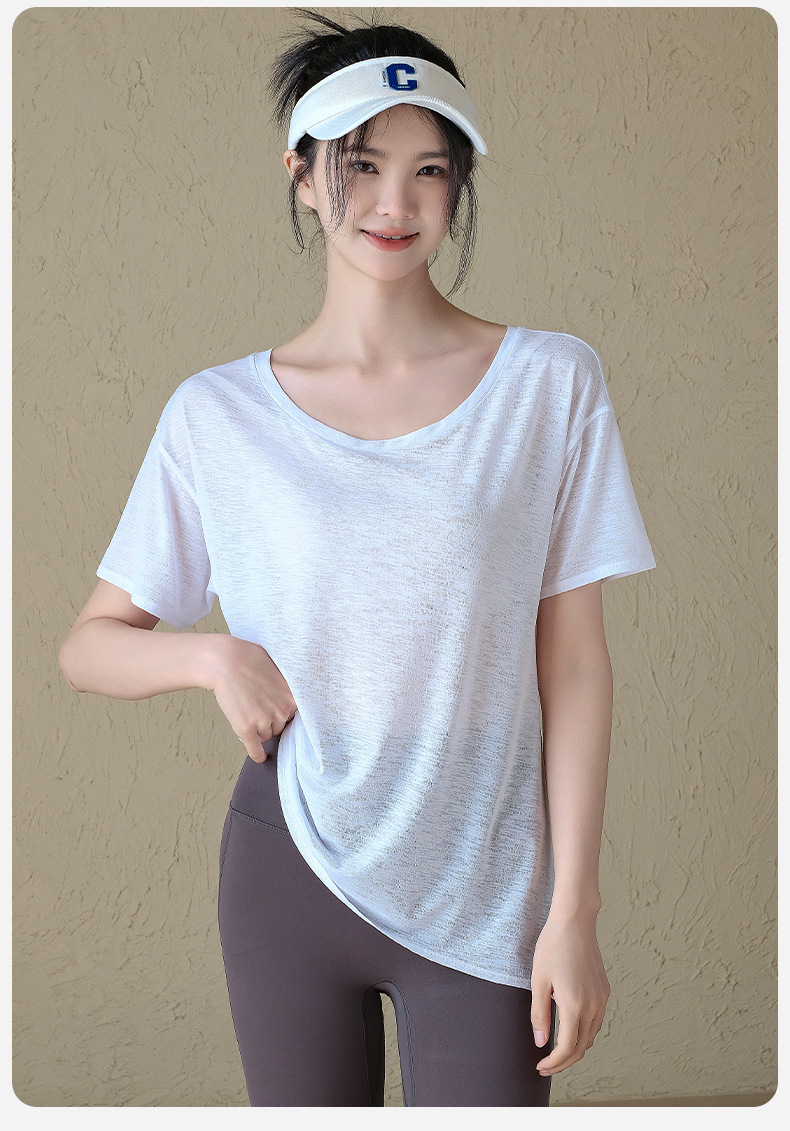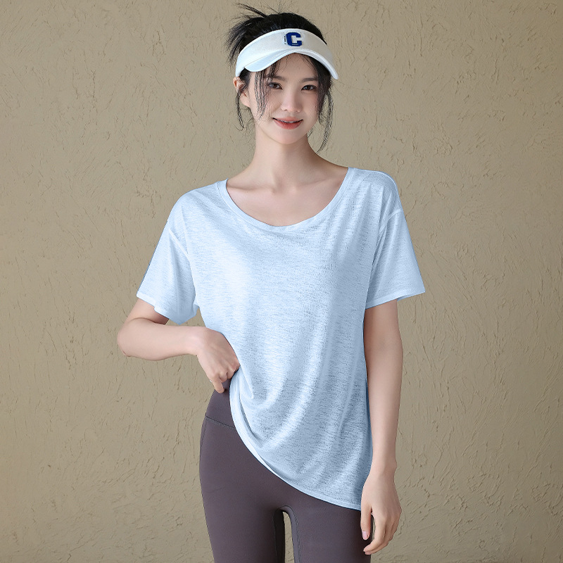 느슨한 경량 통기성 요가 블라우스 여성 여름 필라테스 훈련 피트니스 티셔츠 달리기 짧은 소매스토어 가기