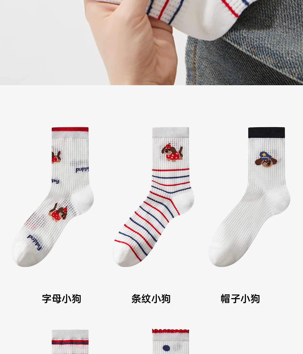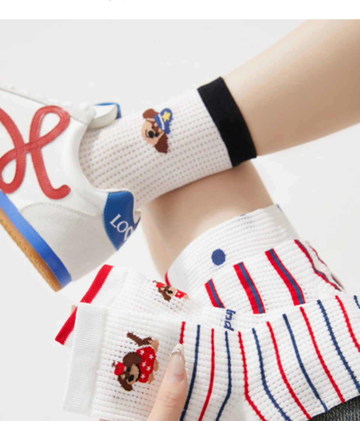 봄과 여름 얇은 메쉬 통기성 숙녀 양말 폴카 도트 만화 강아지 일본면 양말스토어 가기