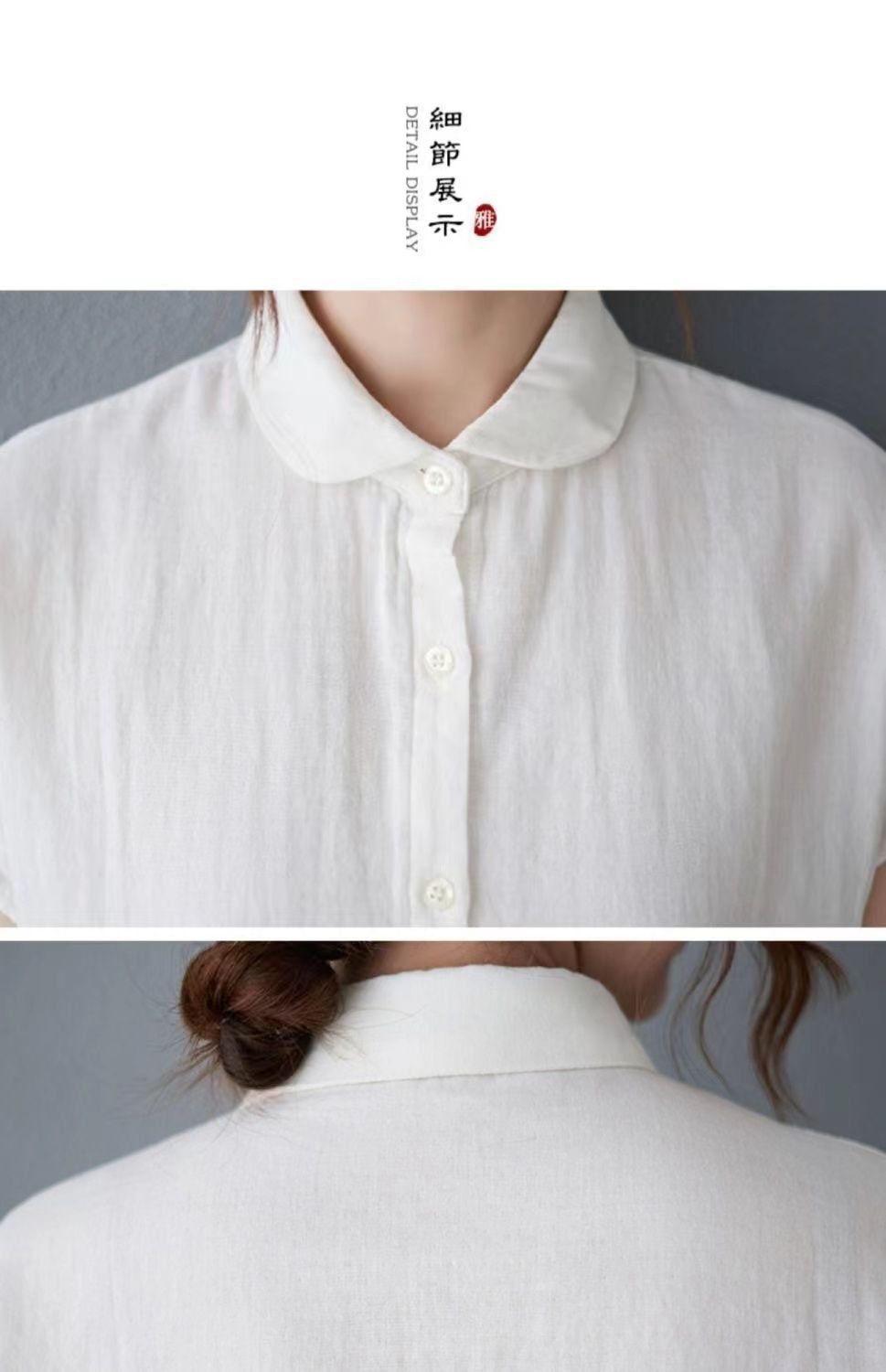 여름 폴로 칼라 디자인 코튼 린넨 짧은 소매 셔츠 여성의 느슨한 작은 플라이 슬리브 코튼 린넨 셔츠 플러스 사이즈 린넨 탑스토어 가기