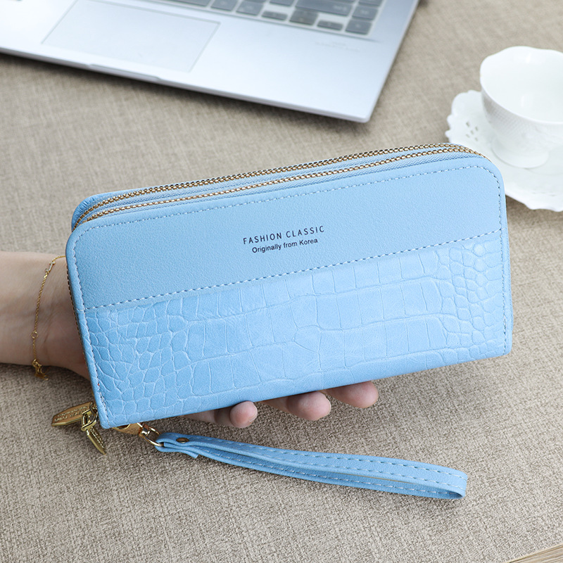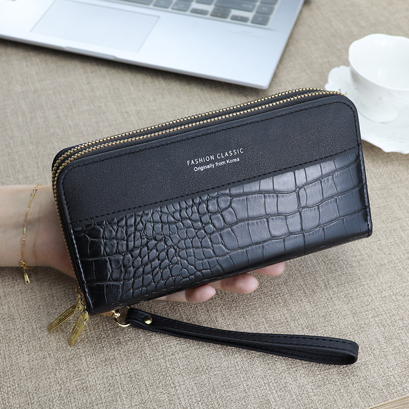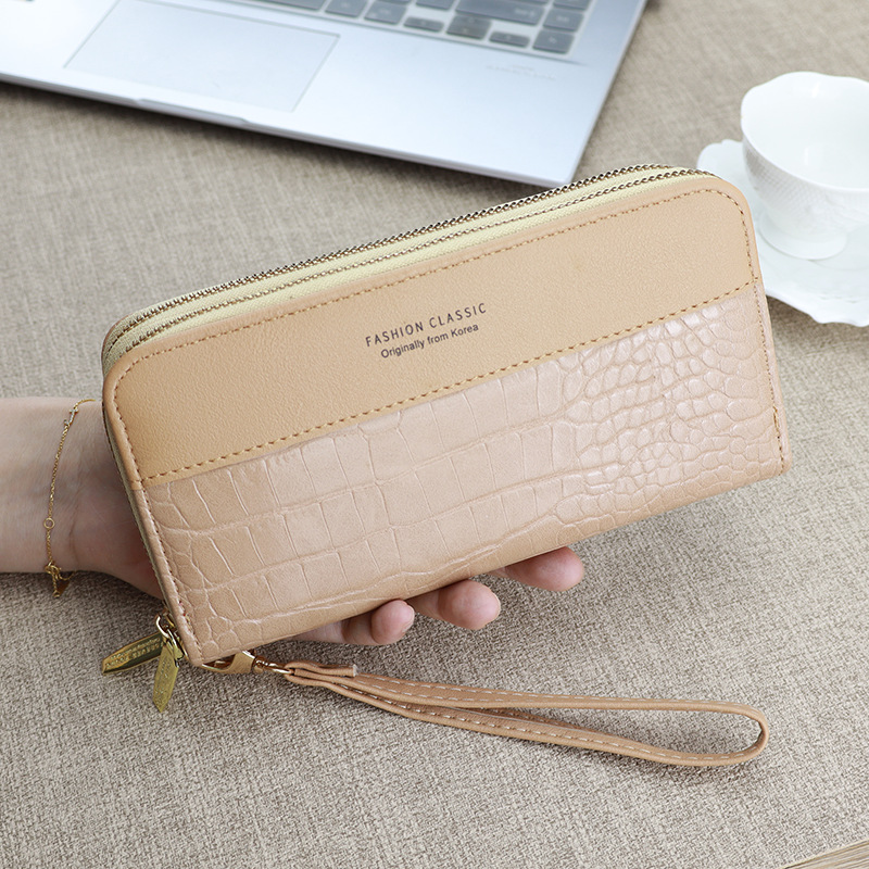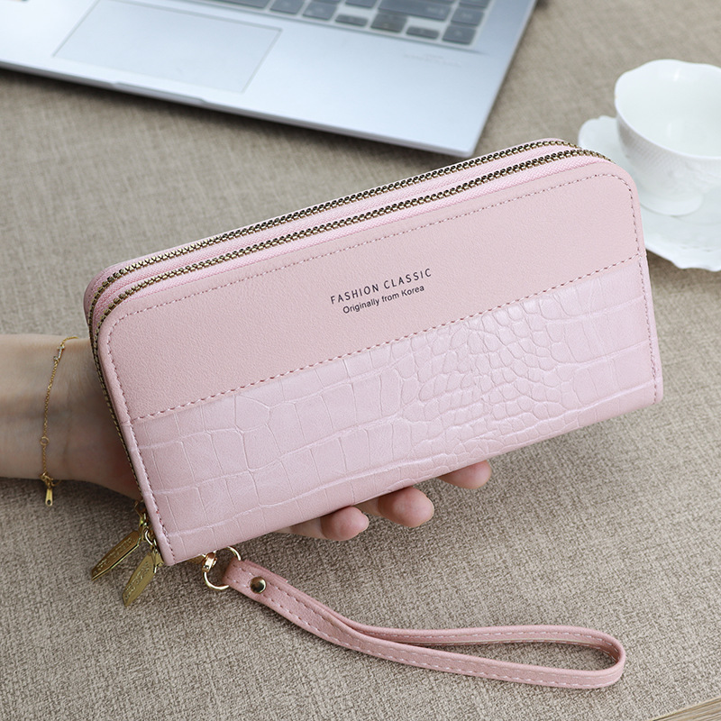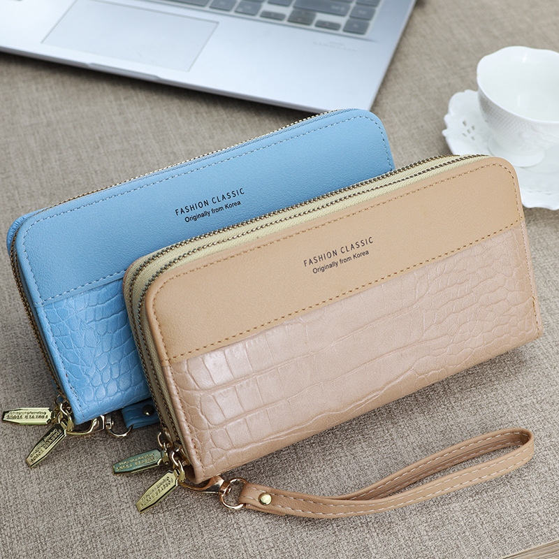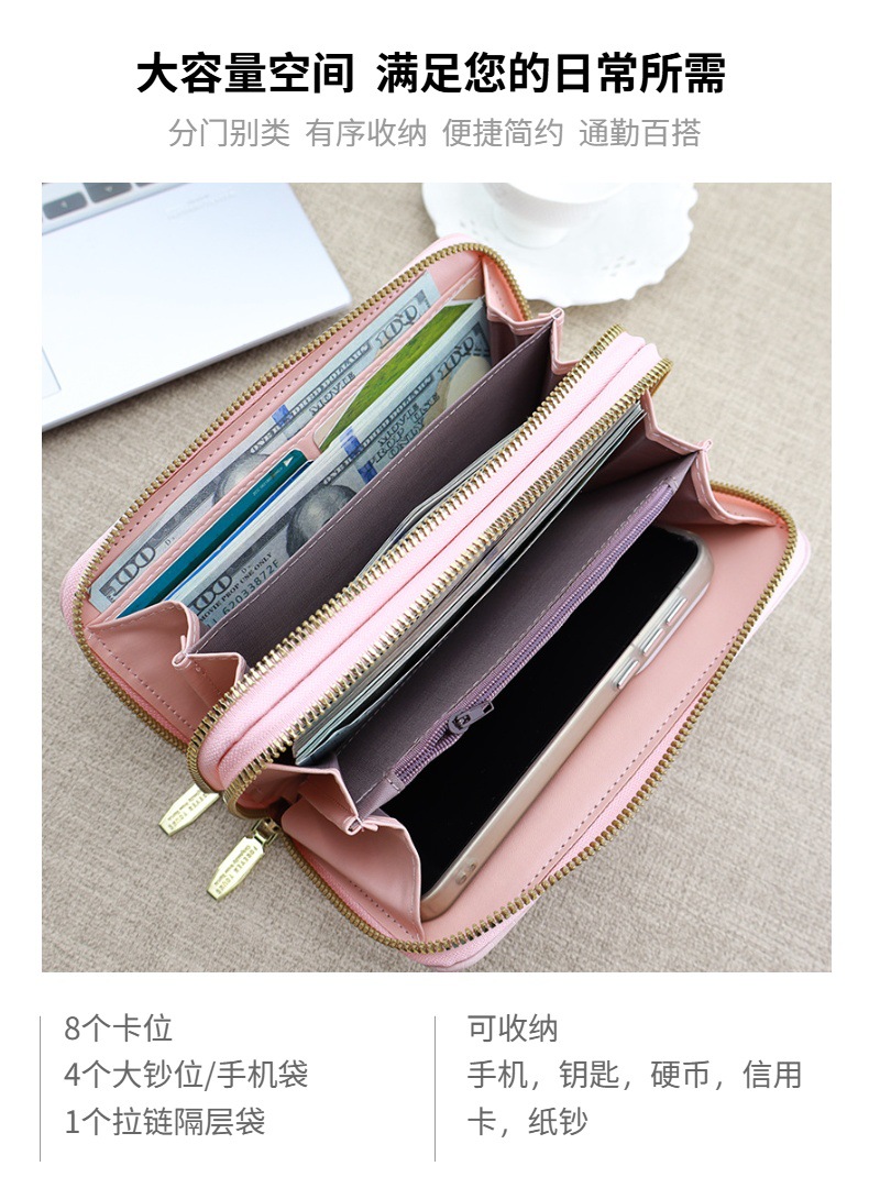 2025 새로운 지갑 여성의 긴 대용량 더블 지퍼 클러치 백 간단한 더블 레이어 휴대 전화 가방 인터넷 연예인 동전 지갑스토어 가기
