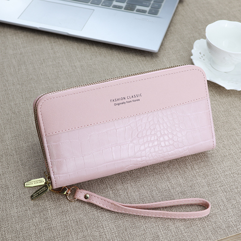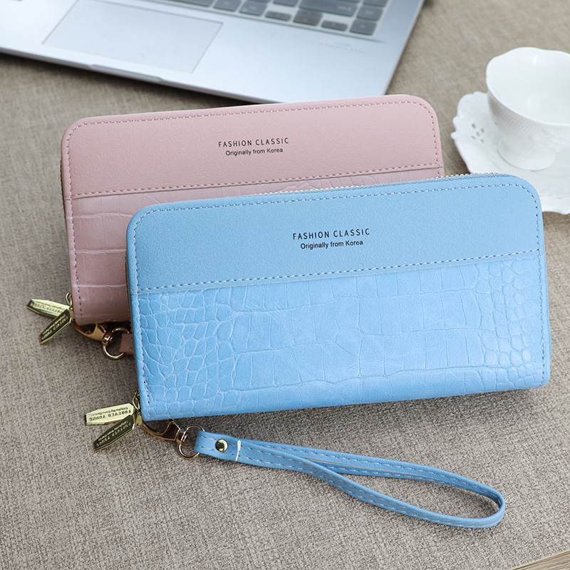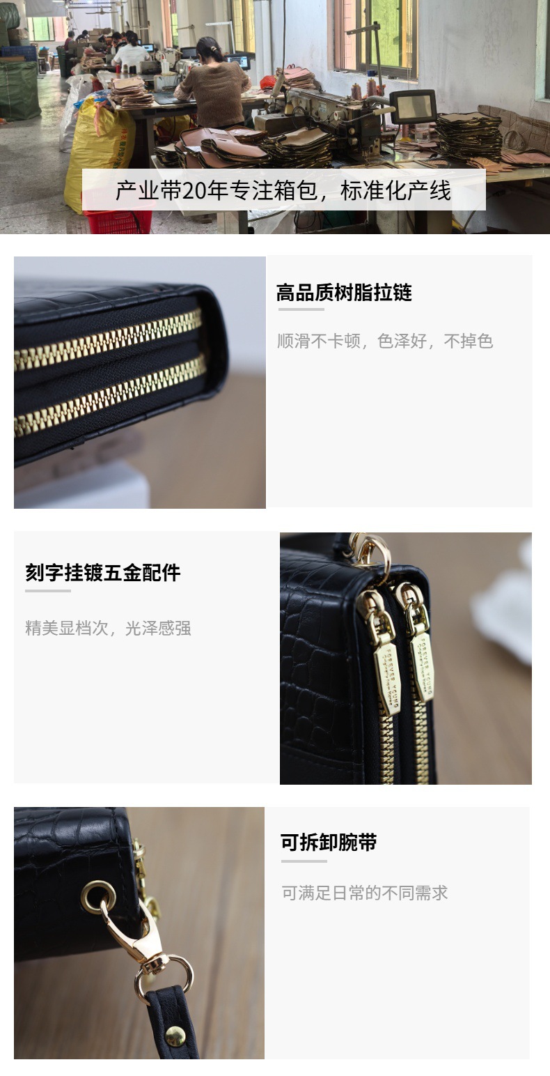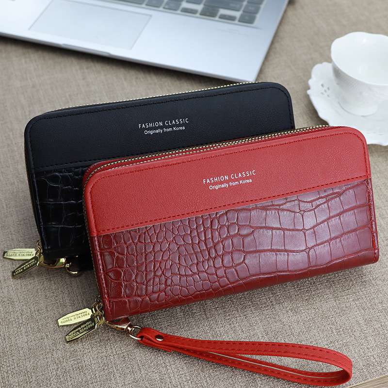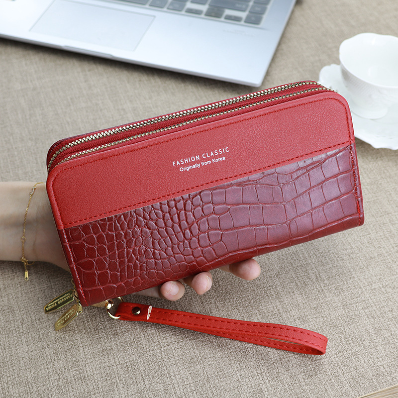 2025 새로운 지갑 여성의 긴 대용량 더블 지퍼 클러치 백 간단한 더블 레이어 휴대 전화 가방 인터넷 연예인 동전 지갑스토어 가기