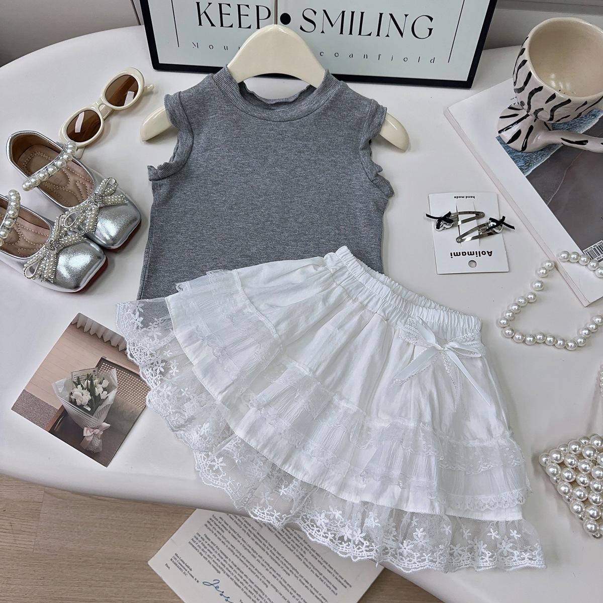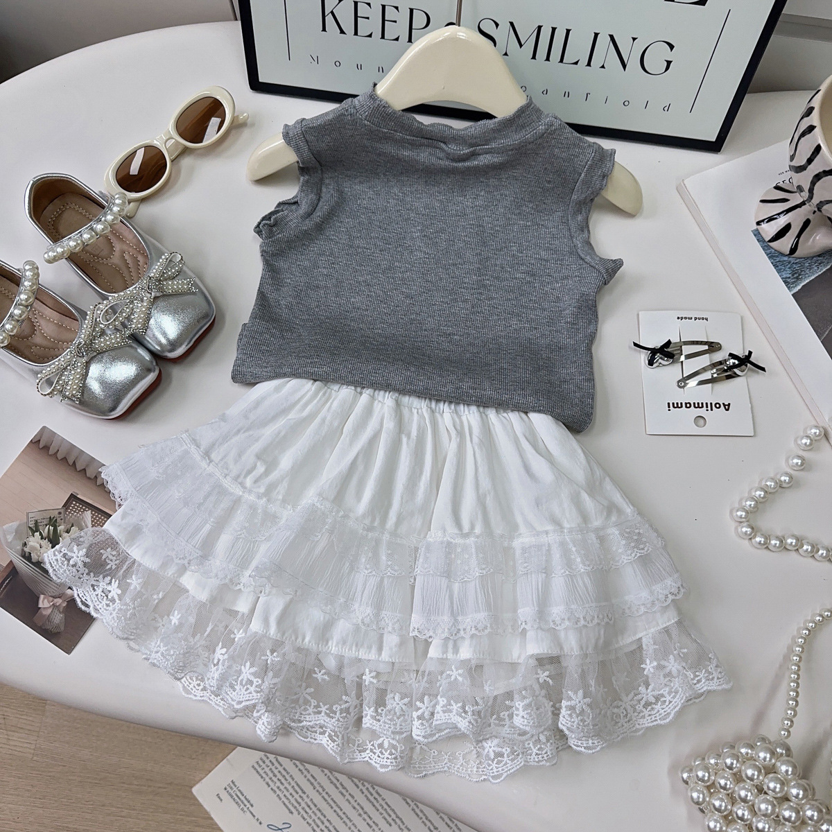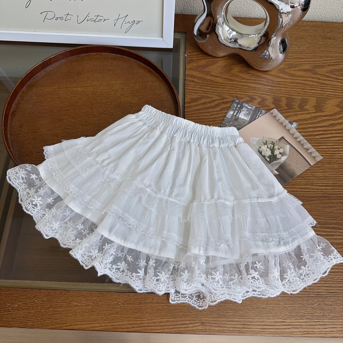 여자 한국 스타일 스커트 여름 새 스타일 아기 소녀 달콤한 기질 단색 레이스 스커트