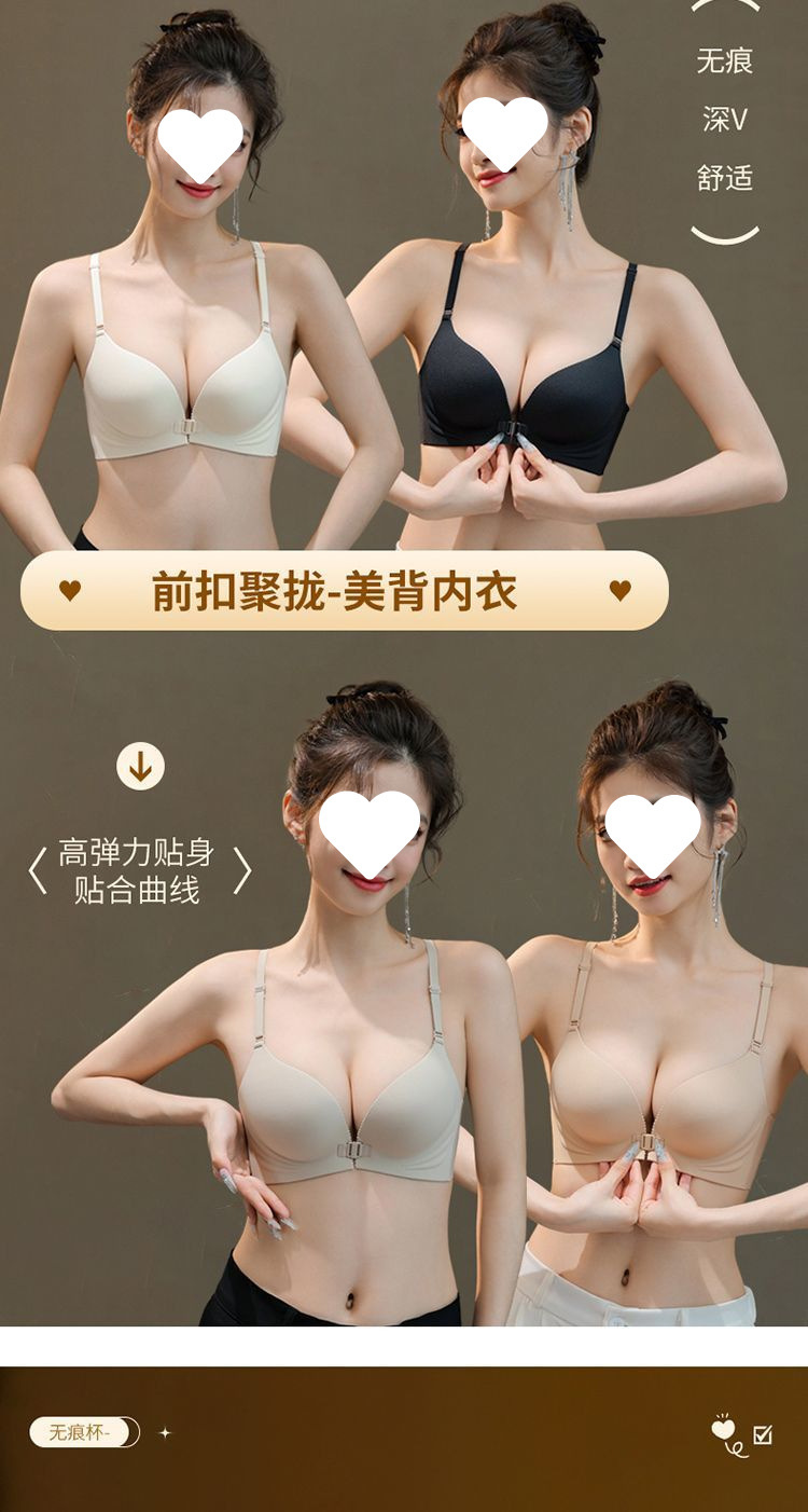 프런트 버클 속옷 여성용 무테 브라 V 자형 아름다운 등 푸시 업 추적없는 어퍼 토틸라 파라 유방 브래지어