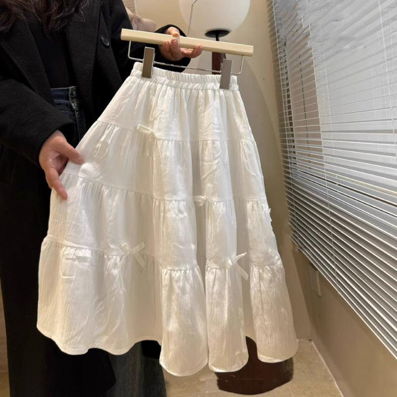 여자 스커트 여름 어린이 케이크 공주 스커트 2025 봄과 여름 새로운 여자 흰색 중간 길이 스커트