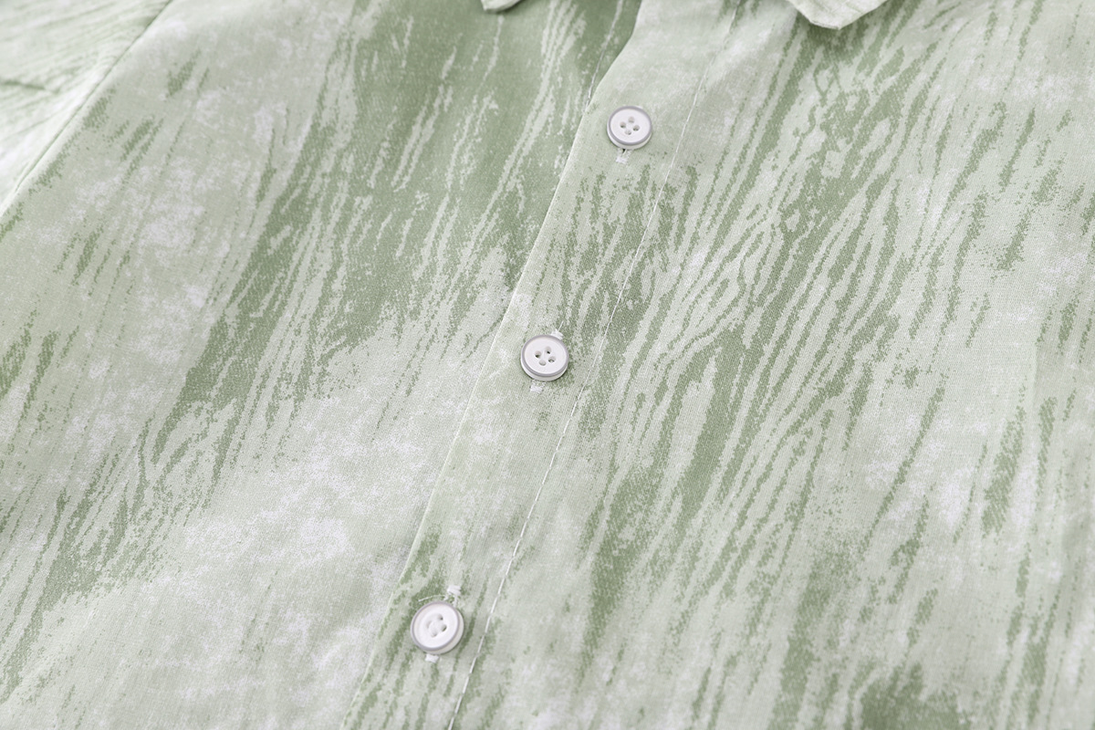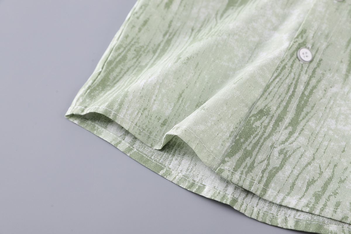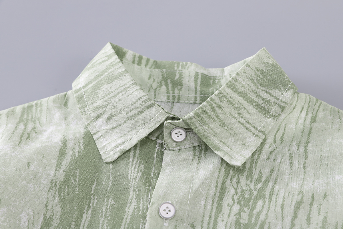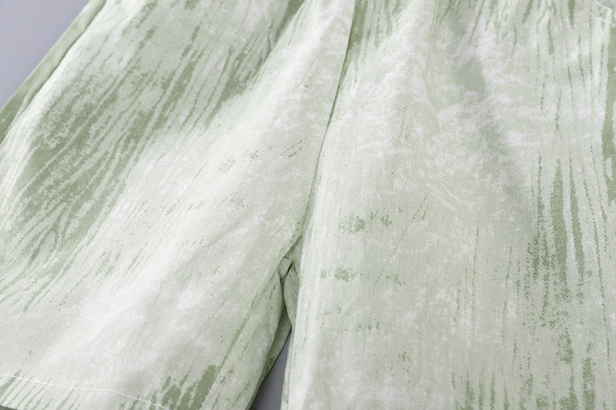 여름 정장 트렌디 한 여름 새로운 한국 스타일 소년 패션 트리 패턴 셔츠 반팔 탑 + 반바지 3 피스 슈트