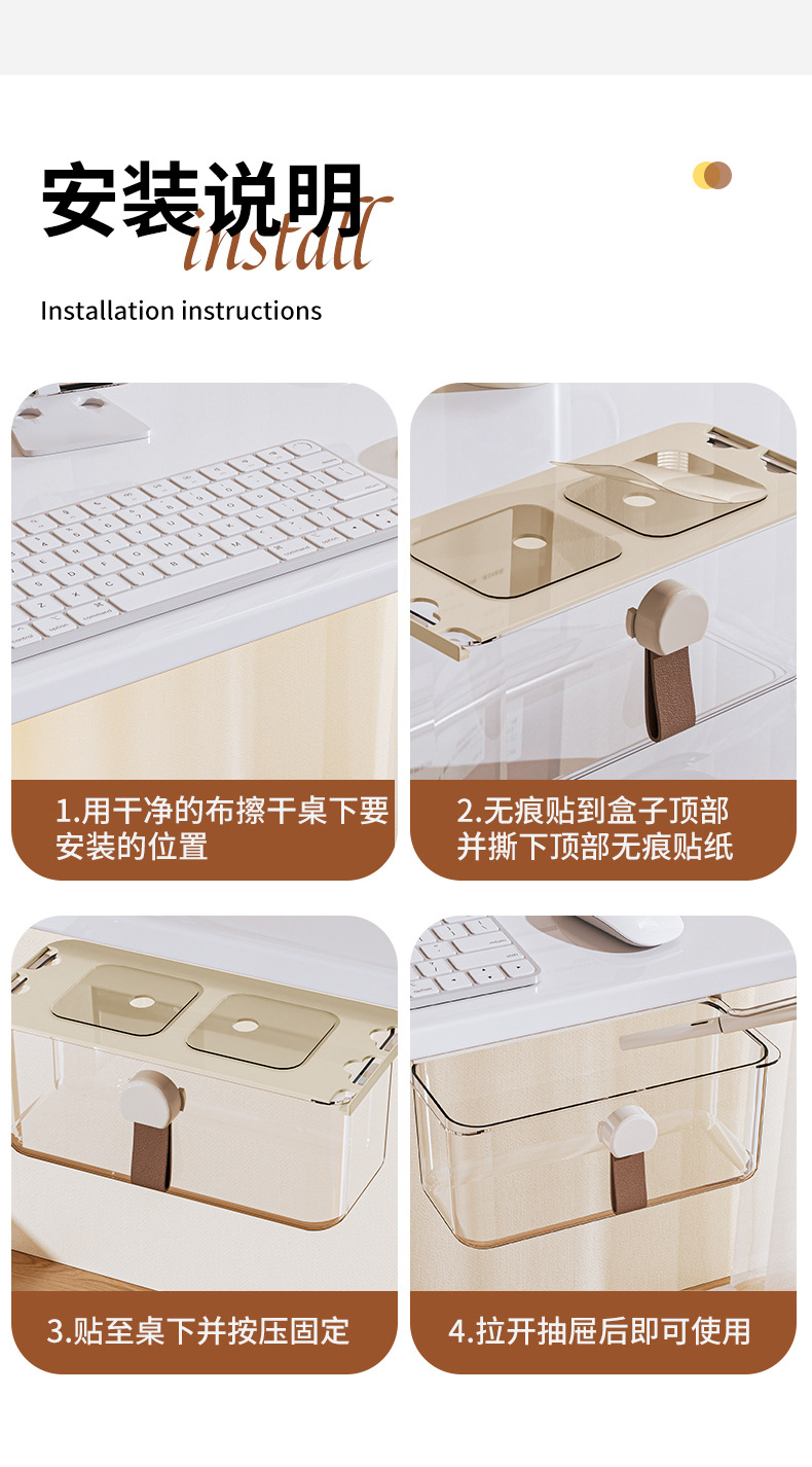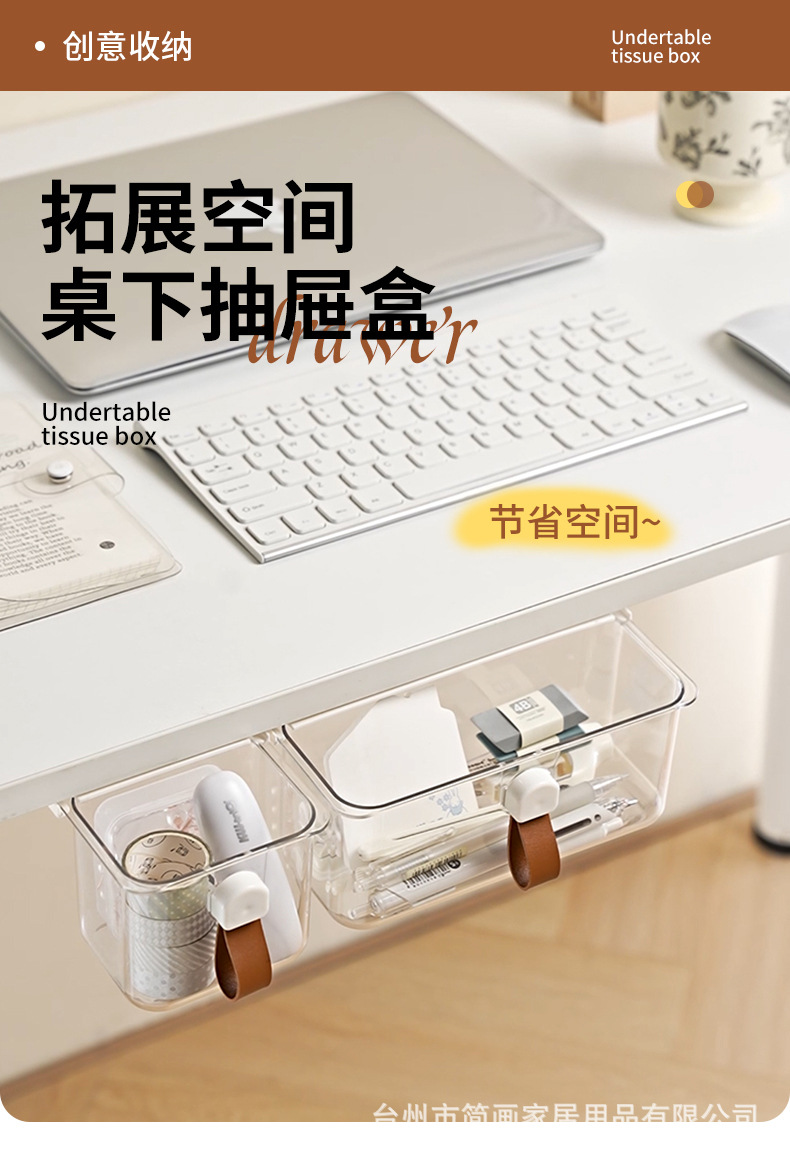 투명한 책상 밑 서랍 수납함, 티슈 박스, 탁상 수납함, 펀치 없는 기숙사 책상, 보이지 않는 수납 유물