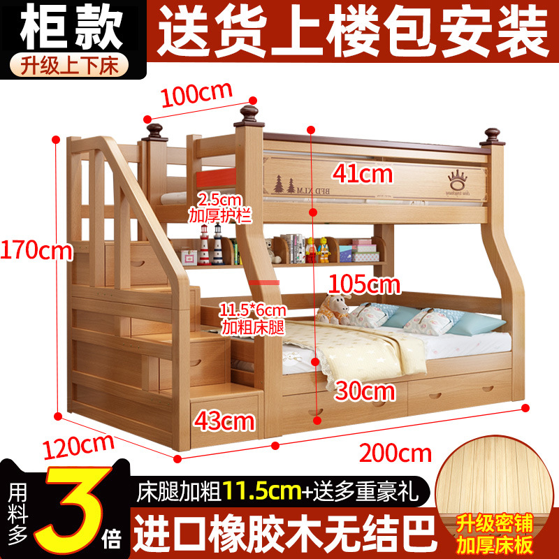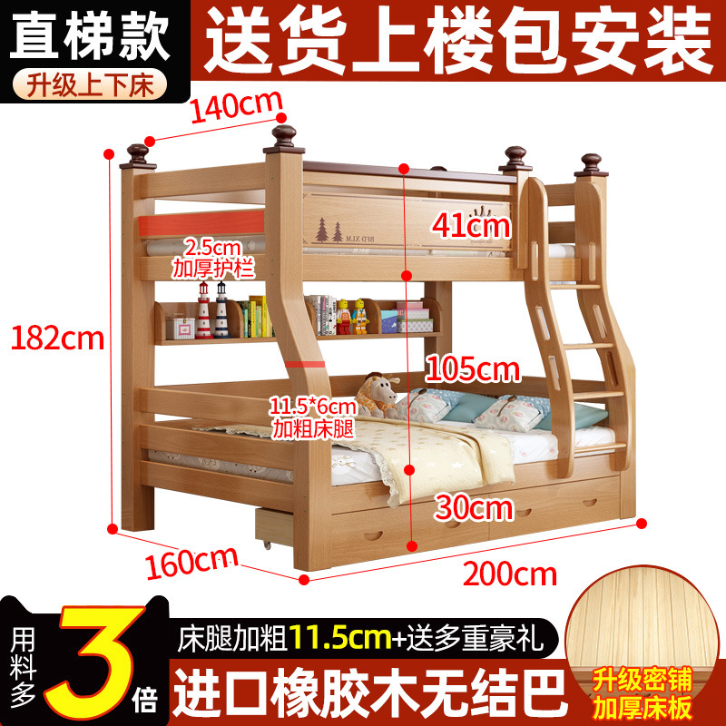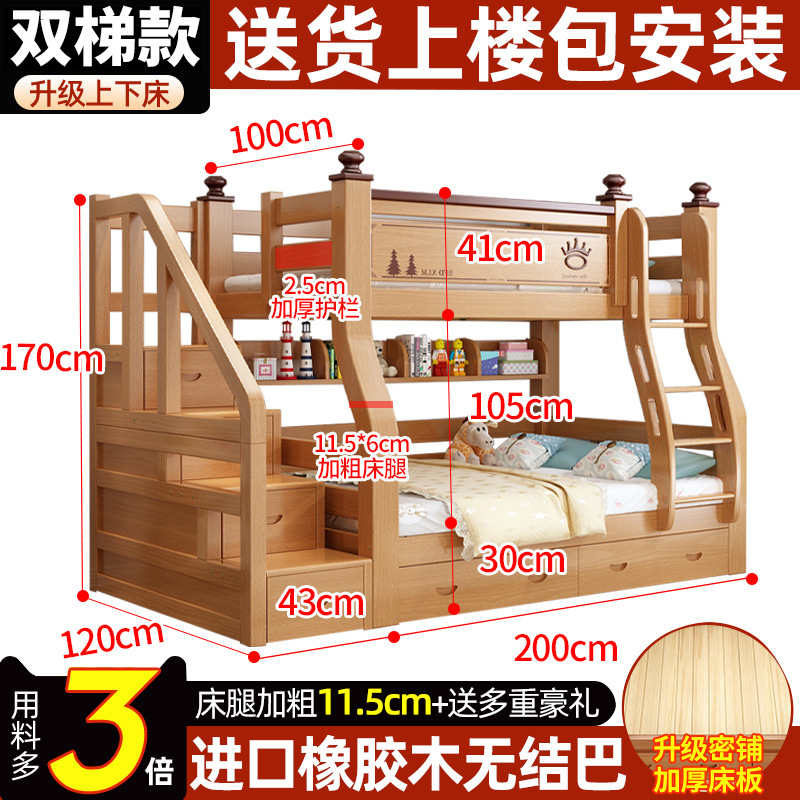 • [로그 업그레이드 모델] 상부 100, 하부 120 이중사다리 [업그레이드된 고무나무] [두꺼워진 침대판]