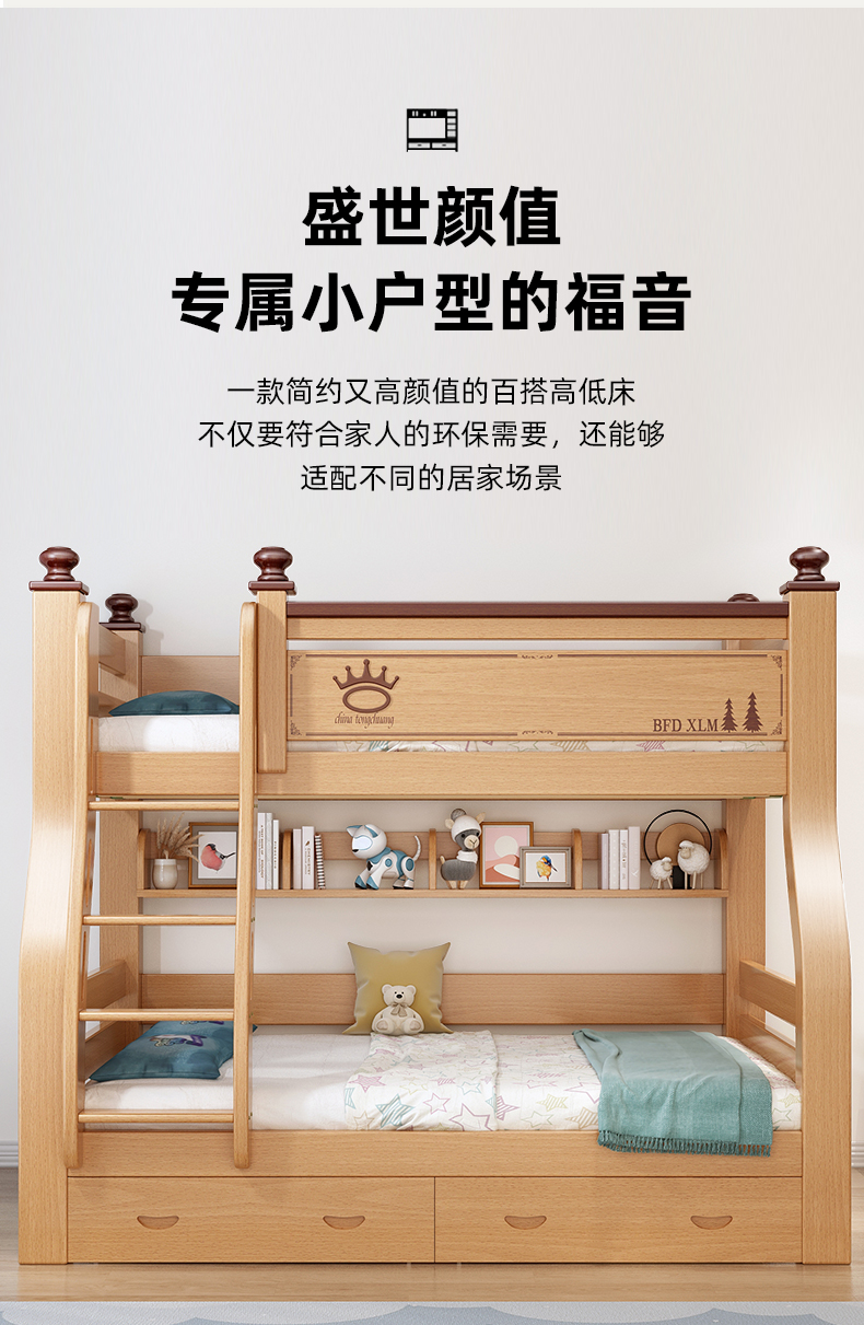 어린이 이층침대, 고무나무 이층침대, 다기능 원목 이층침대, 이층침대