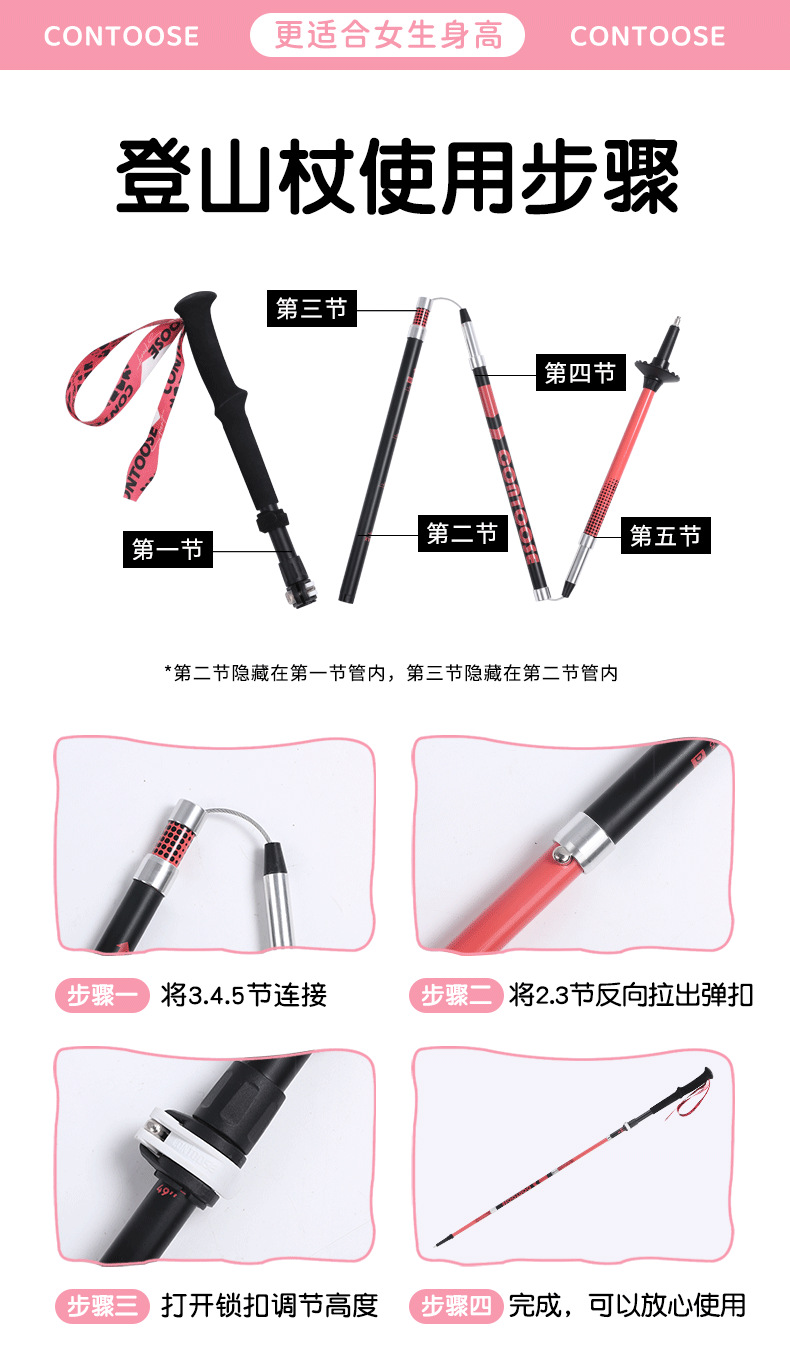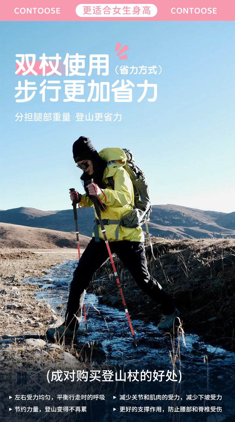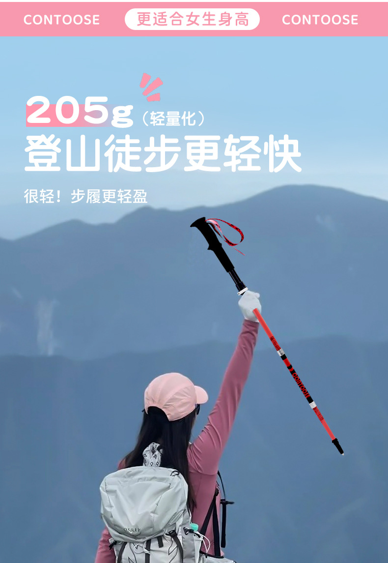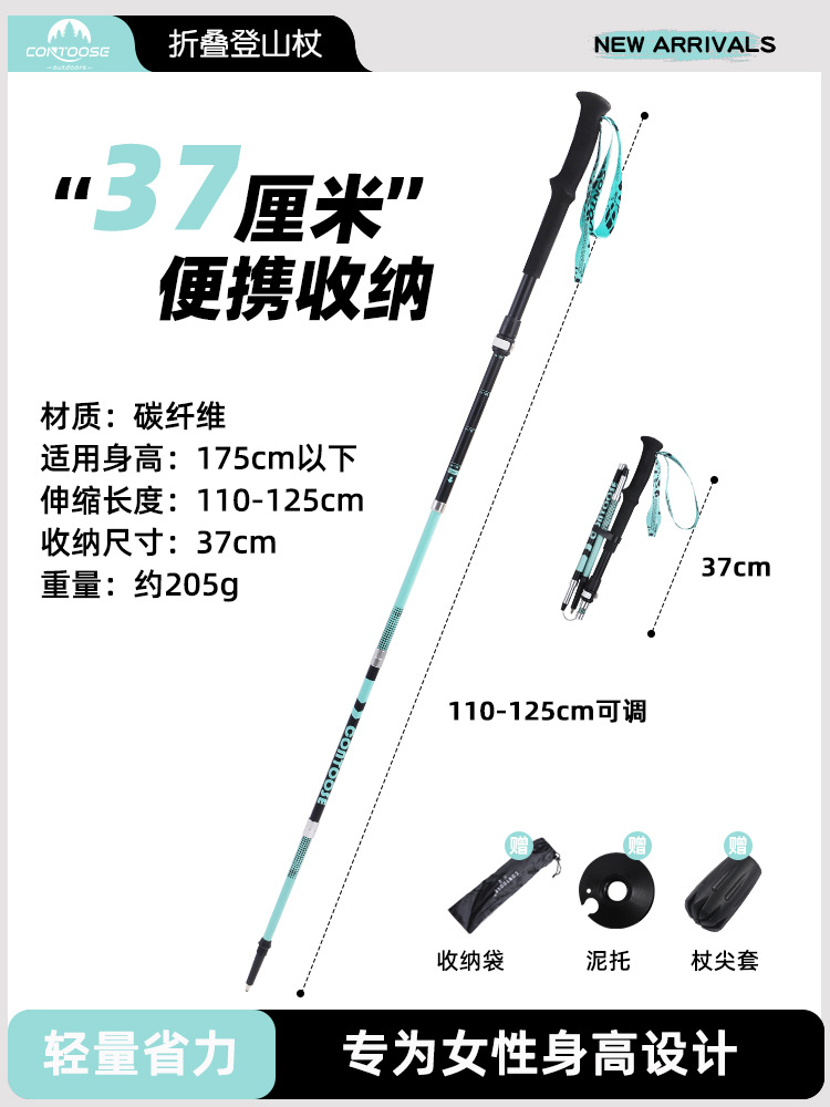스마일 샤크 지팡이 전문 야외 접이식 하이킹 지팡이 탄소 초경량 텔레스코픽 하이킹 장비 지팡이스토어 가기