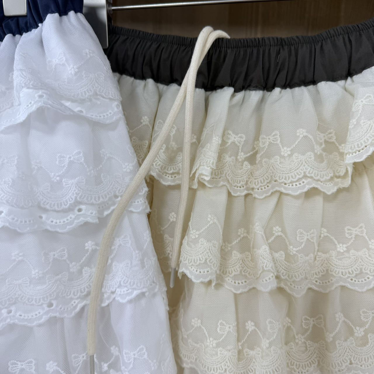 Spot 한국 동대문 BYCHAPTER 신축성 있는 허리 달콤한 리본 레이스 스커트 케이크 스커트스토어 가기