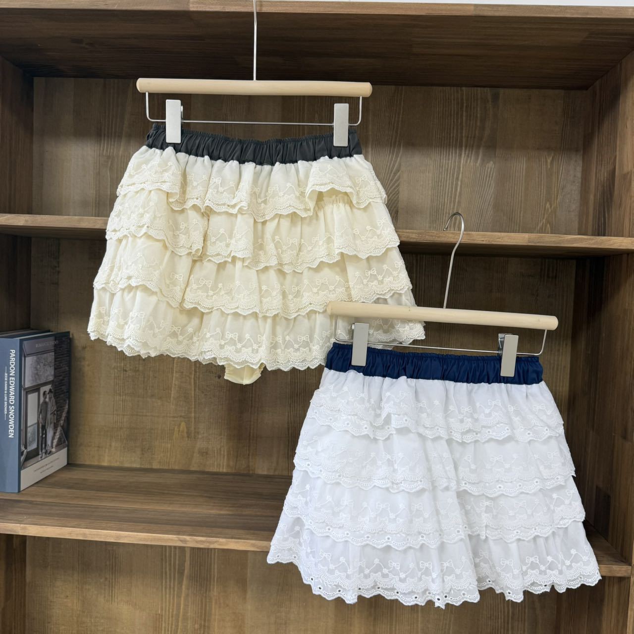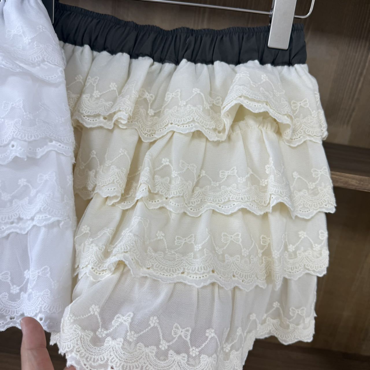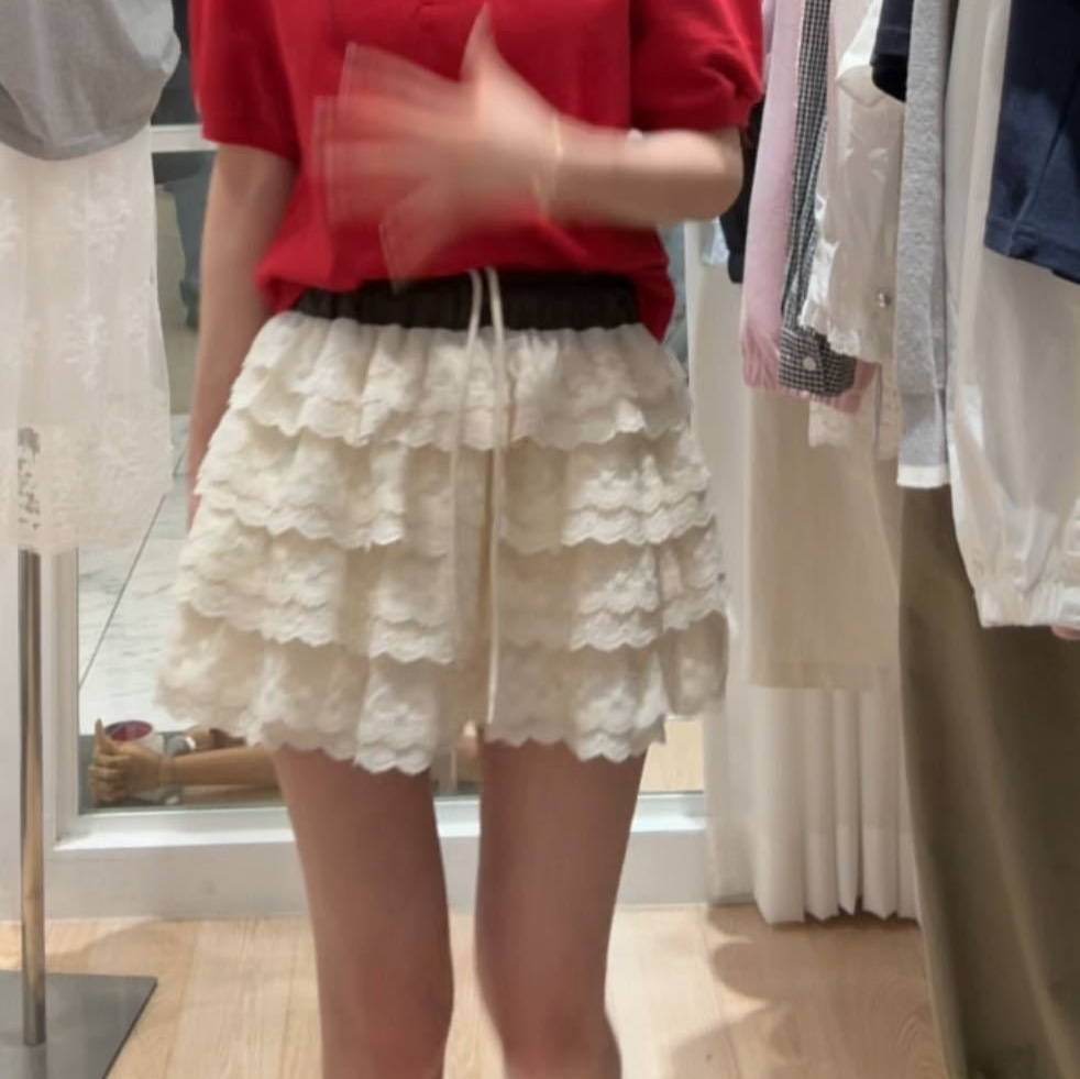 Spot 한국 동대문 BYCHAPTER 신축성 있는 허리 달콤한 리본 레이스 스커트 케이크 스커트