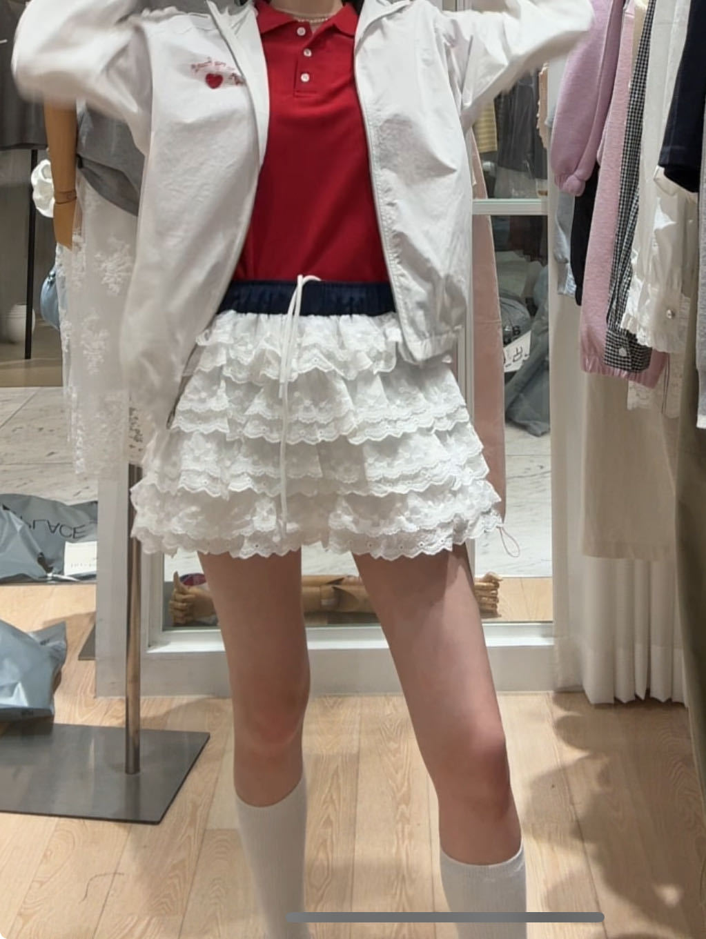 • 레이스 케이크 스커트 화이트