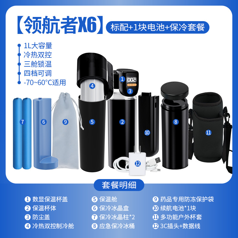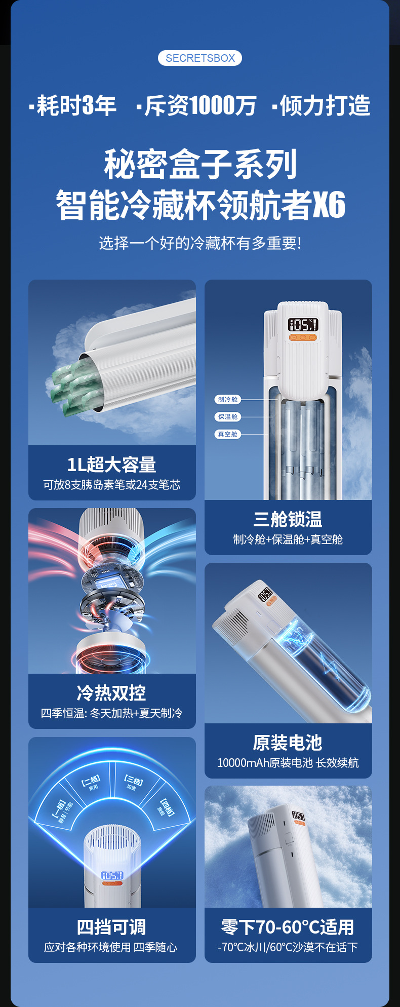 • 1L 대용량★온냉 이중 제어★3개의 구획 온도 잠금 장치★4단 조절 가능★-70 ~ 60도 적용 가능