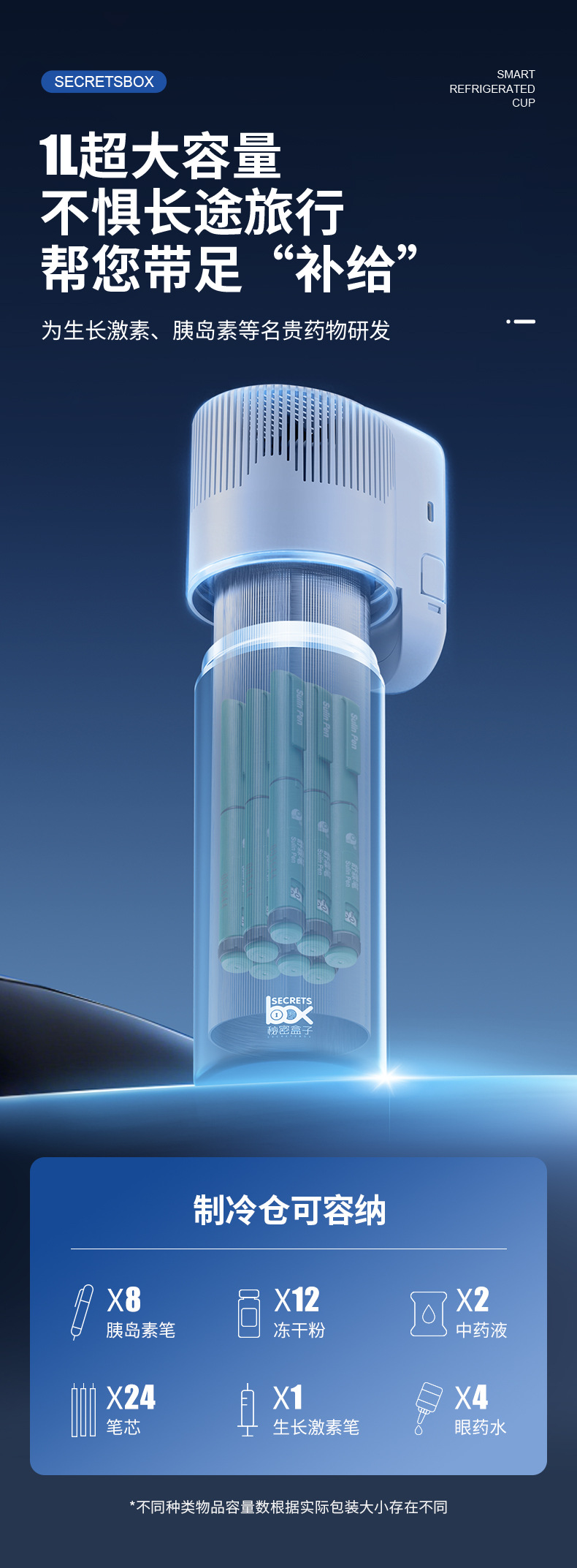 시크릿 박스 지능형 성장 호르몬 냉장 컵 올 시즌 항온 2025 새로운 대용량 충전식 휴대용 냉장스토어 가기
