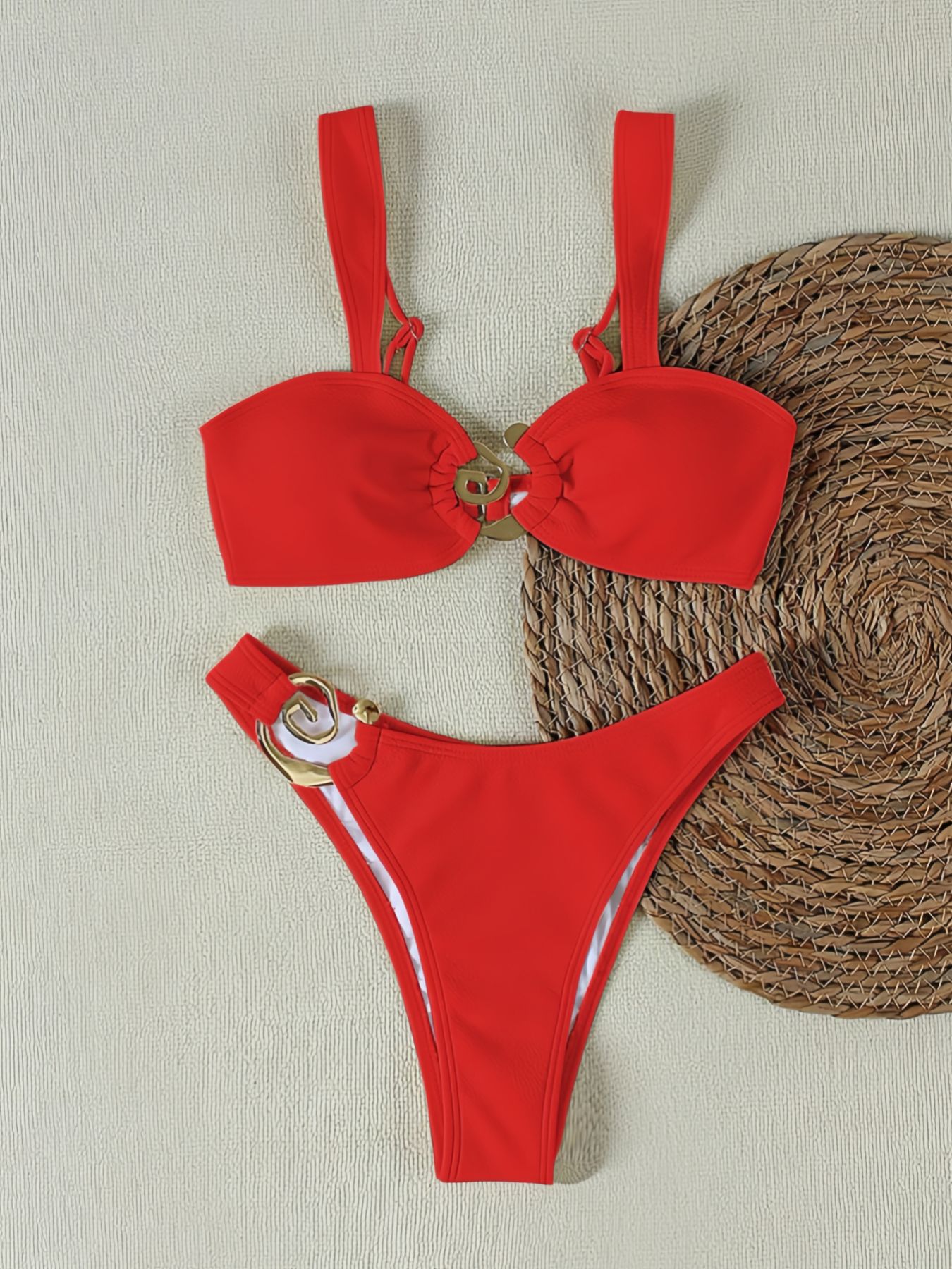 여성 수영복 대외 무역 2025 새로운 유럽 및 미국 국경 비키니 단색 섹시한 비키니 분할 수영복